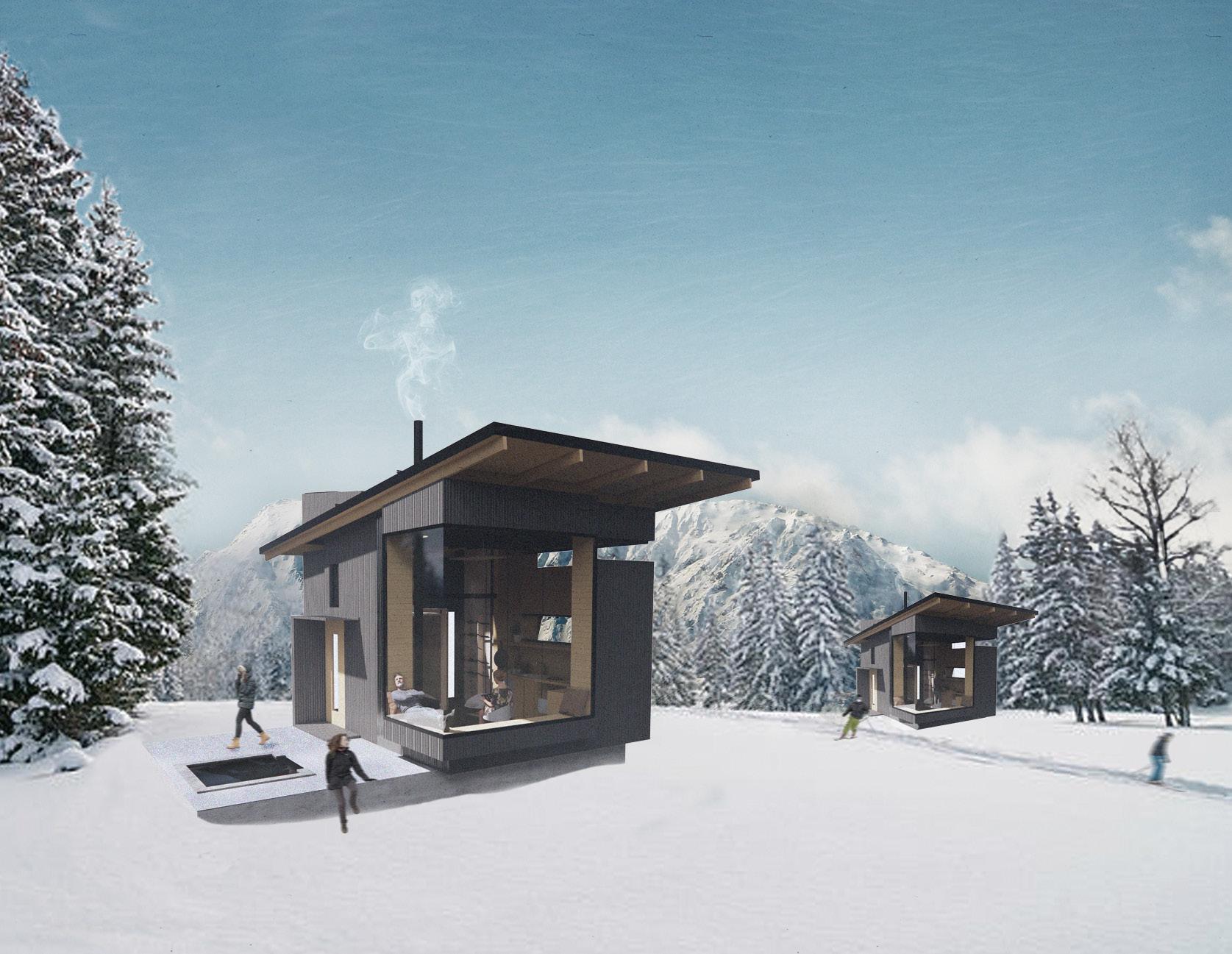 Located between the Three Kings Terrain Park and Three Kings Ski Slopes, the units can be accessed via the First Time or Three Kings lifts. Employees can ski directly from their homes onto the slopes, providing convenient access to the wide network of ski lifts leading to any point on the resort. Because the units are placed within a very short distance to the base of the mountain, their location provides access to grocery stores, retail stores, parks, bus stops, restaurants, bars, and many other amenities. The close proximity to the base of the mountain also allows for a far more reasonable slope which greatly reduces the costs of construction and promotes ease of access to the units. A balanced distance between each unit allows for a sense of privacy in a constantly active environment but encourages gathering between employees when desired. A stunning view of Park City is presented to the northeast of the units as the employees can overlook the slope into the city without interruptions.