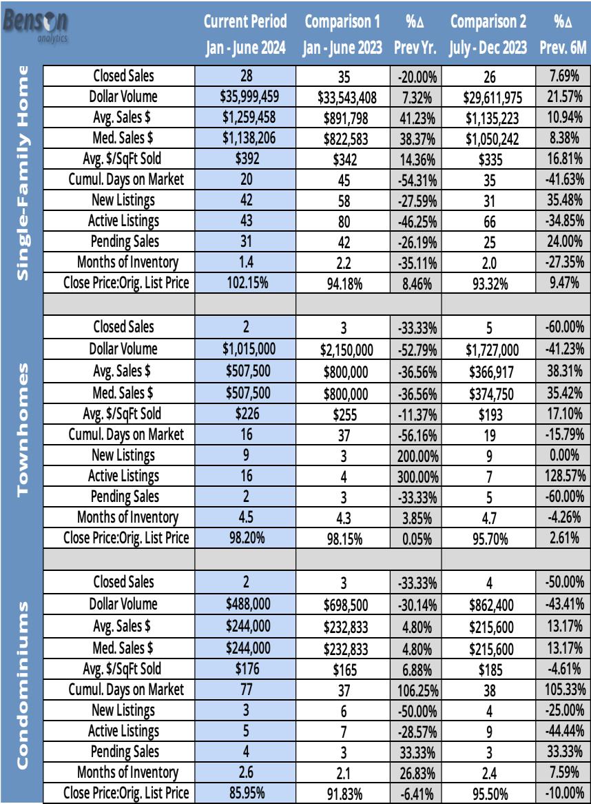 The information contained herein has been obtained from sources deemed reliable. While every reasonable effort has been made to ensure its accuracy, we cannot guarantee it. No responsibility is assumed for any inaccuracies and readers are encouraged to consult their professional advisors prior to acting on any of the material contained in this report. If your home is presently offered for sale, this is not a solicitation of the listing. Benson Analytics is not affiliated with Douglas Elliman Real Estate.