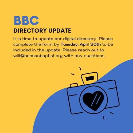 You can do this two ways: either by going to the Directory website or by filling out the form at www.bensonbaptist.org/churchdirectory