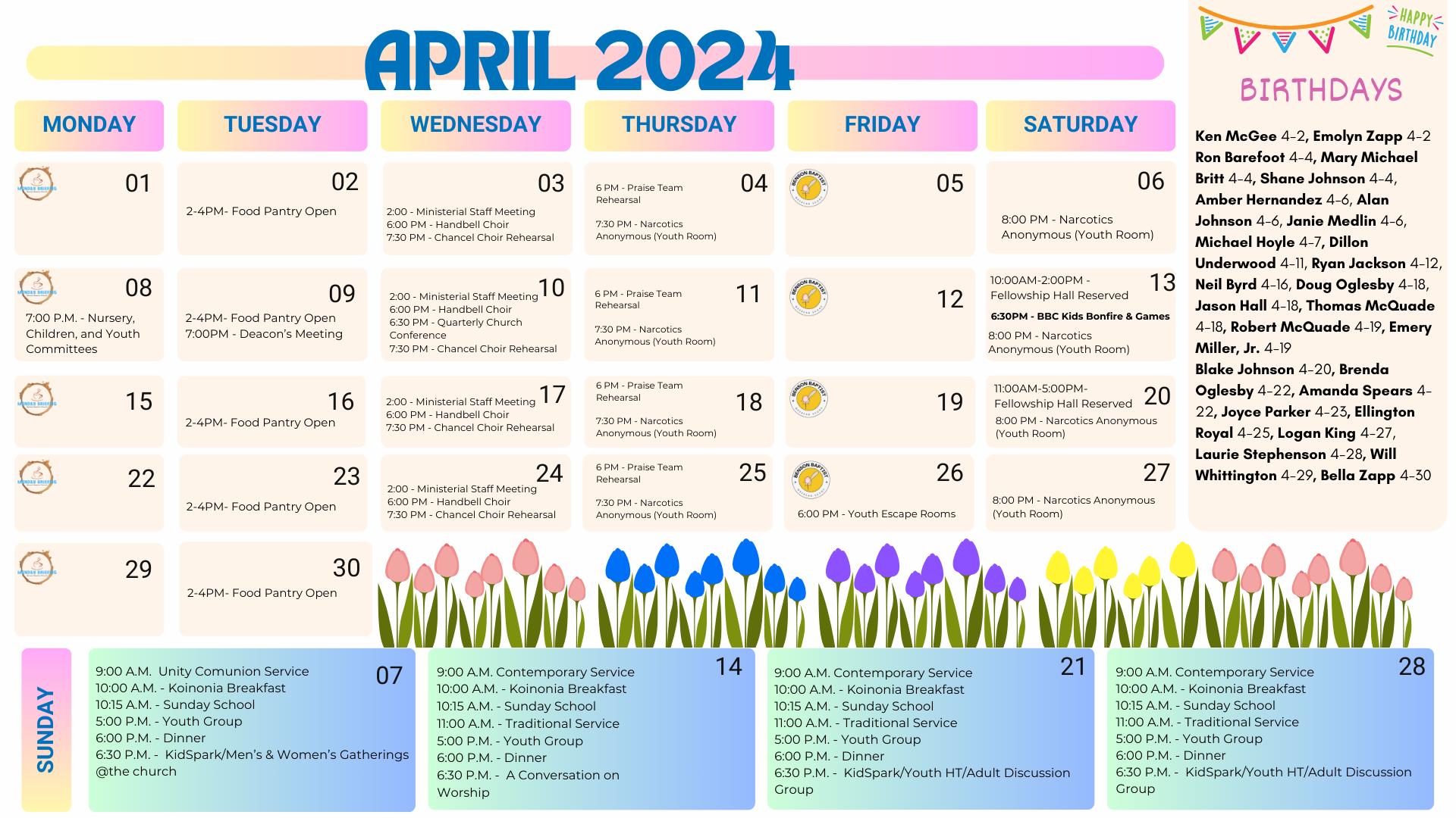 Please plan to join us on Wednesday, April 10 at 6:30 P.M. in the Fellowship Hall