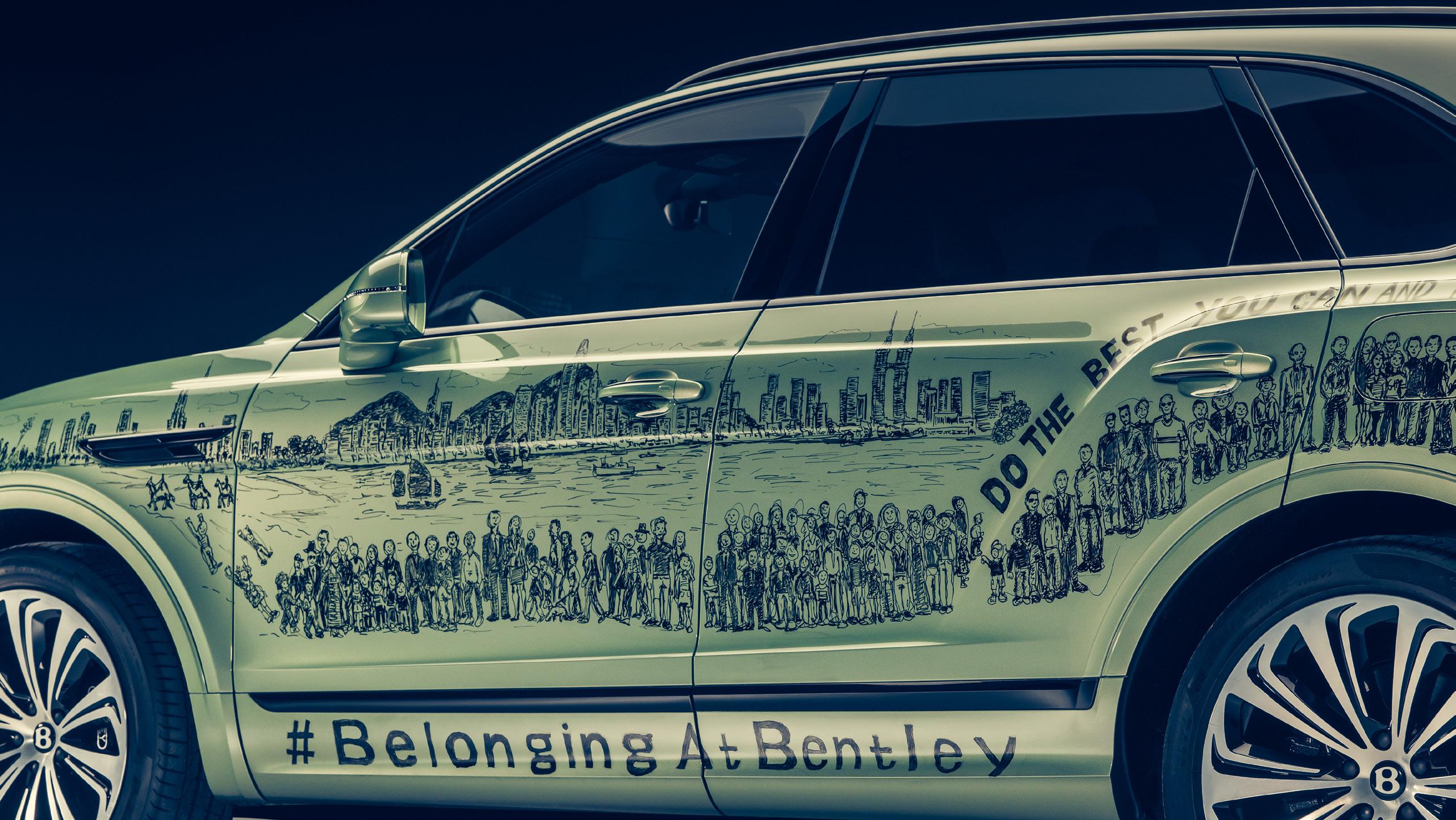 Our colleagues got an exclusive look at our third Inclusion Car before it was officially launched to the public. This unique hand painted Alpine Green Bentayga Hybrid features different skylines and well-known buildings from across the world such as New York, London, Paris, Rome, Milan, Venice, Tokyo and Hong Kong – each side of the car representing a different continent.