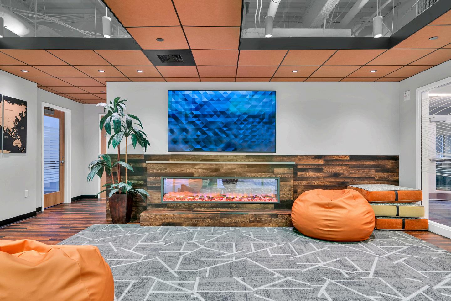New single- and doubleoccupancy meeting pods were installed to provide additional meeting space