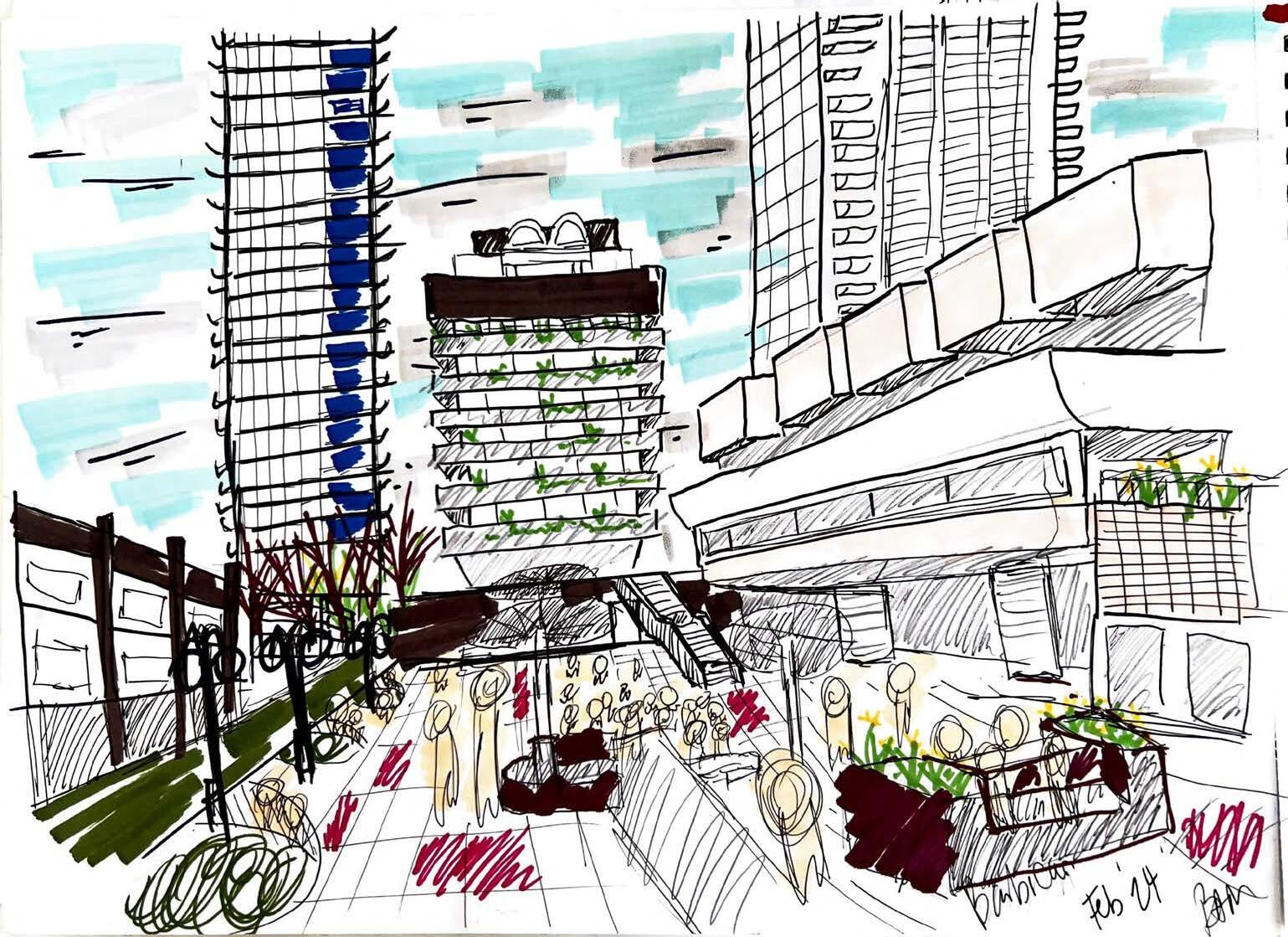 In a digital age, the ability to visualise, create, and recreate images using acoustic techniques is important for me to capture ideas, feelings, and details quickly in the built environment. Hand drawing brings a personal touch to paper for the thoughts and ideas in my head about our places and spaces.