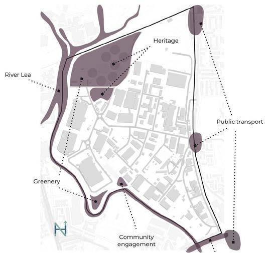 Matthew Carmona’s module tasked students to create a comprehensive masterplan and proposal for a cohesive, regenerative, and prosperous new community at the industrial site that sits to the east of the River Lea, north of Canning Town. My group set out to create a safe, lasting, and meaningful place for residents, staff, and visitors by uncovering and promoting the hidden heritage and natural resources available whilst promoting the budding artistic scene in the area.