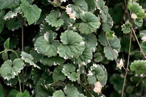 Wide, golden-green leaves and flowers of palest violet, almost white Jul-Aug; 50cm x 1m