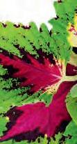 Aka ‘elephant ear’, with long burgundy stems and velvety blue-green heart-shaped leaves. Grow in pots and bringindoors in autumn or lift and store the corms in a cool, dry place 1.5x 1m; part shade