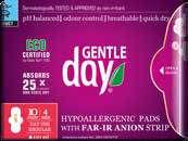 GENTLE DAY ekologiški dieniniai higieniniai paketai su anijonų juostele, N10 GENTLE DAY ekologiški naktiniai higieniniai paketai su anijonų juostele, N8 „Gentle Day“® produktai – moterims, kurios myli save, saugo savo sveikatą ir rūpinasi aplinka. Ekologiškos „Gentle Day“® higienos prekės itin tinka moterims, kurių oda linkusi sudirgti ar alergiška. Lietuviškas prekės ženklas „Gentle Day“® garantuoja aukštą produktų kokybę, yra draugiškas Jums ir gamtai. Produktai yra sertifikuoti Oeko-Tex® 100, Made for Helath®, VEGAN sertifikatais.