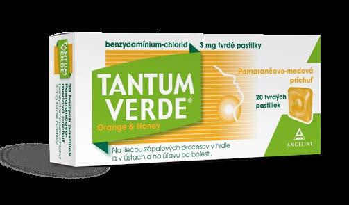 Tantum Verde® – efektívne odstráni bolesť a zápal hrdla vďaka svojmu štvoritému účinku. Dostupné ako chutné pastilky, sprej alebo roztok na kloktanie. Výhodne aj iné produkty TANTUM VERDE. Liek obsahuje benzydamínium-chlorid. Liek na vnútorné použitie.1