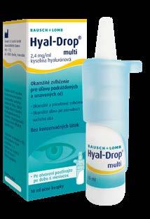 Hyal-Drop multi sú umelé slzy s vysokým obsahom kyseliny hyalurónovej, bez konzervačných látok, určené na zvlhčenie očí a kontaktných šošoviek.
