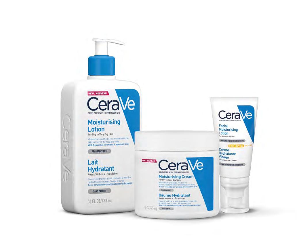 Dermokosmetika CeraVe nabízí kompletní řadu přípravků péče o pleť a pokožku vyvinutou s dermatology pro efektivní rutinu na každý den. Všechny produkty CeraVe obsahují 3 esenciální ceramidy, lipidy přirozeně se vyskytující v pokožce, které se díky unikátní technologii MVE postupně uvolňují do pokožky a zajišťují tak její dlouhotrvající hydrataci.