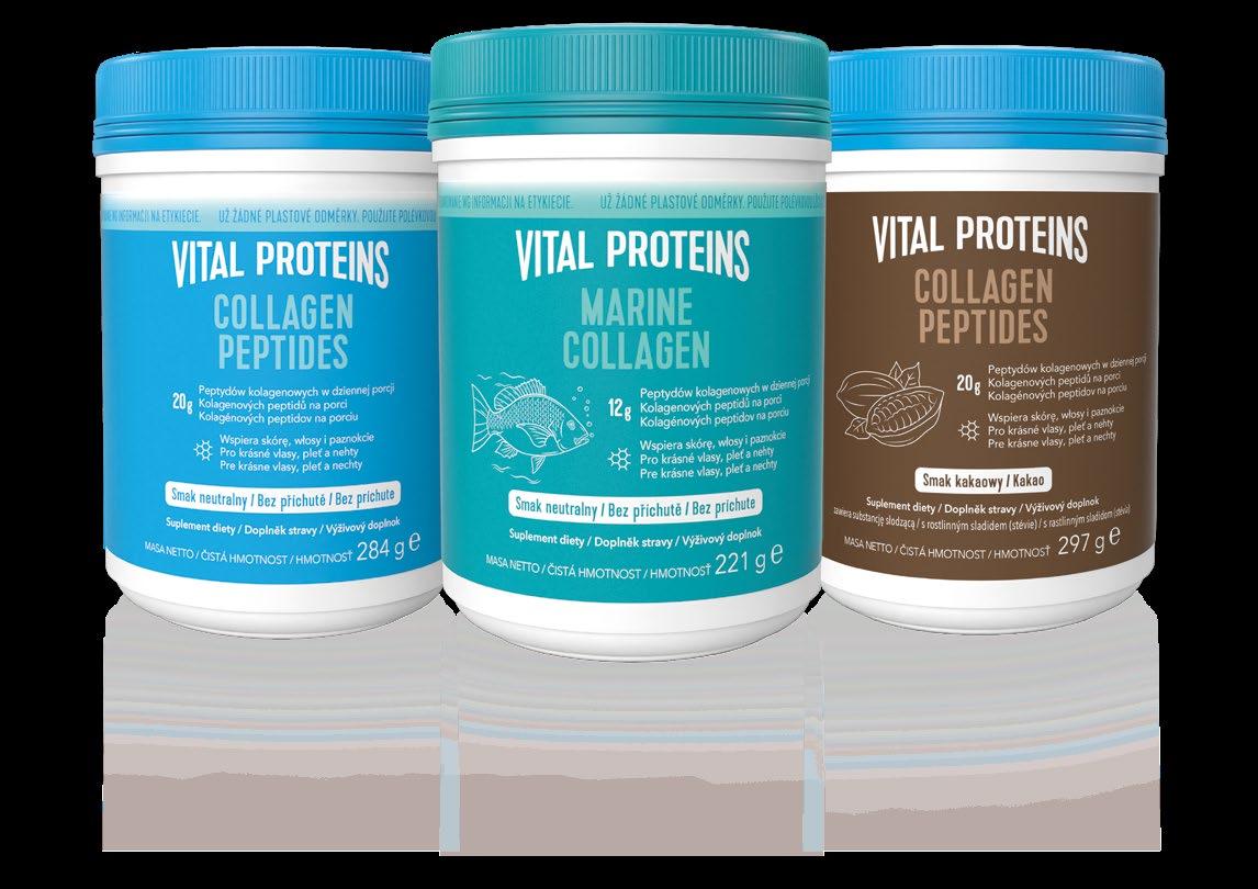 Doplňky stravy. *Při nákupu jakýchkoliv nezlevněných doplňků stravy Vital Proteins sleva 150 Kč z ceny těchto přípravků. **Interní srovnání obchodovaných doplňků stravy s obsahem kolagenových peptidů, uvedených v seznamu 04H1P OTH.DIET.SUPPLEM-POWDERS. IQVIA, ČR, srovnání provedeno v prosinci 2024. Vital Proteins Collagen Peptides: kolagen (z hovězího) 20 g/denní dávka. Vital Proteins Marine Collagen: kolagen (z ryb): 12 g/denní dávka. ***Nejprodávanější doplněk stravy s kolagenem v USA - Circana Omnimarket Total US MULO na základě vlastní definice Nestlé Health Science pro Total Collagen Sports Nutrition/Vitamins, SPINS Total US - Natural Expanded Channel, údajů Stackline-Amazon a Nielsen-Whole Foods končících 26. 1. 2025 (údaje Costco nejsou k dispozici).