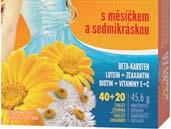 Dopln k stravy pro krásné opálení a zdravou pokožku obsahuje komplex karotenoid , extrakt ze sedmikrásky obecné a m sí ku léka ského, biotin (p ízniv ovliv uje stav pokožky) a vitaminy E a C. V akci také další druhy.