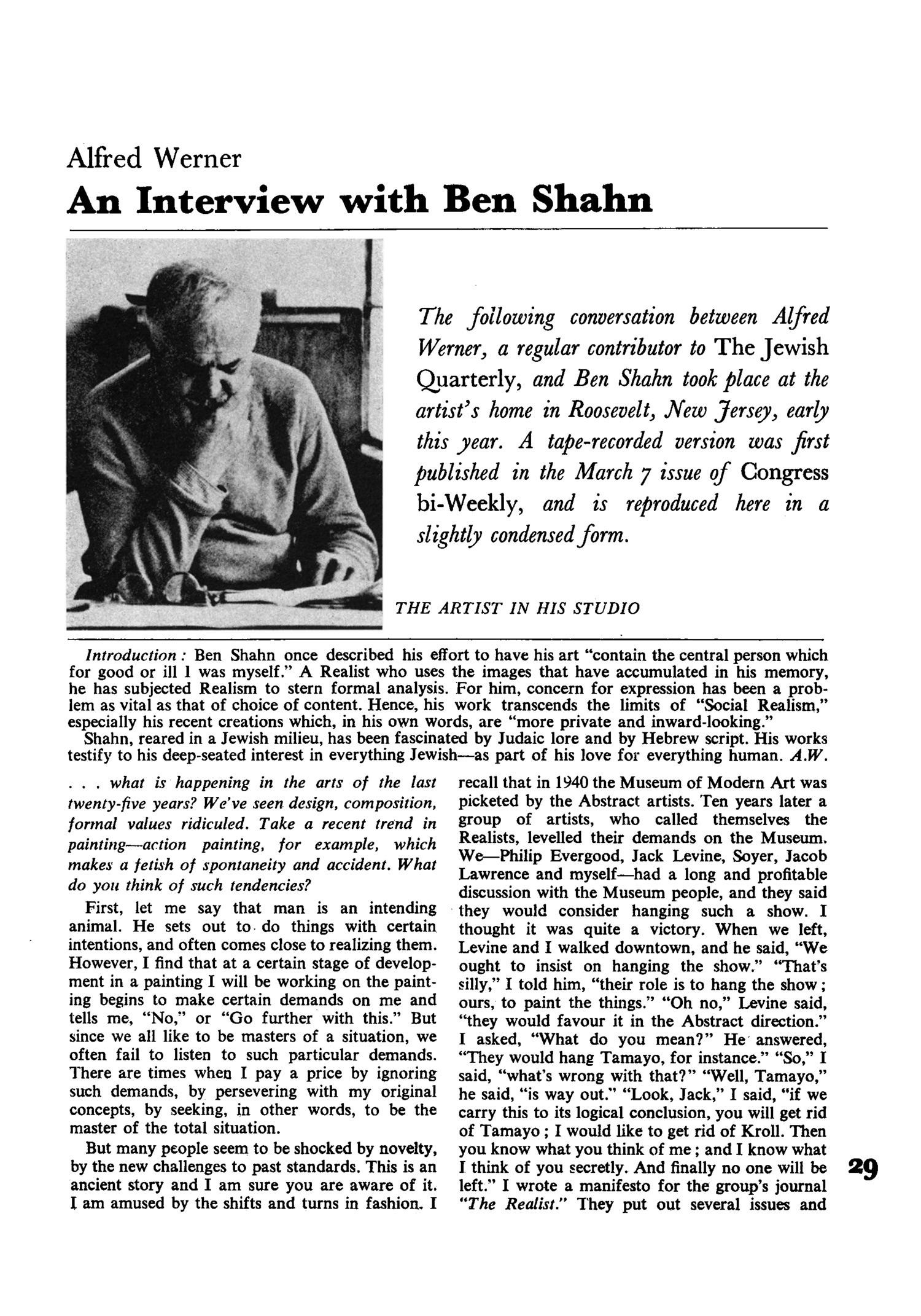 Autumn 1966: An Interview with Ben Shahn by Alfred Werner