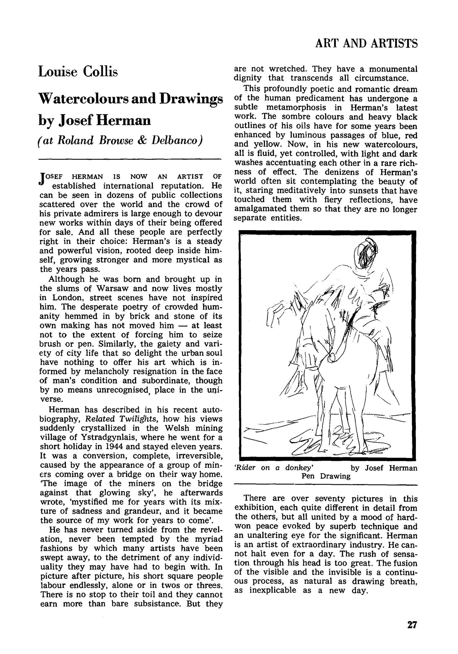 Winter 1976-77: Watercolours and Drawings by Josef Herman by Louise Colliis