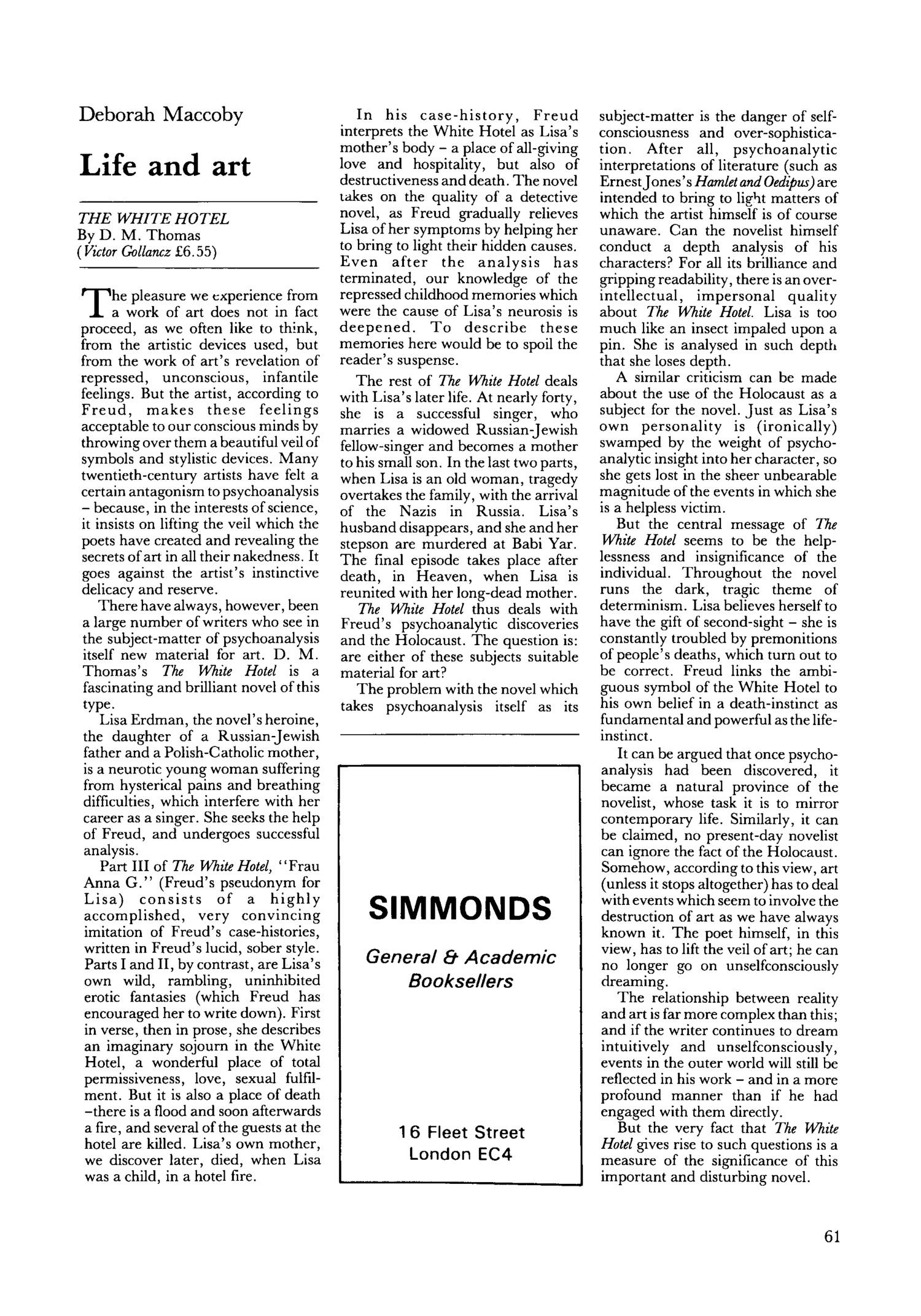 Spring-Summer 1982: Life and Art by Deborah Maccoby