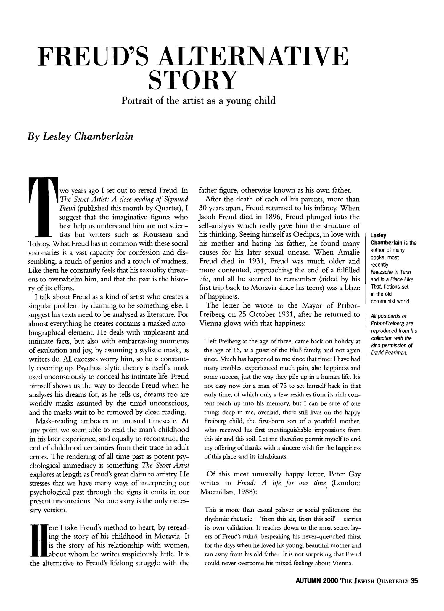 Autumn 2000: Freud’s Alternative Story by Lesley Chamberlain