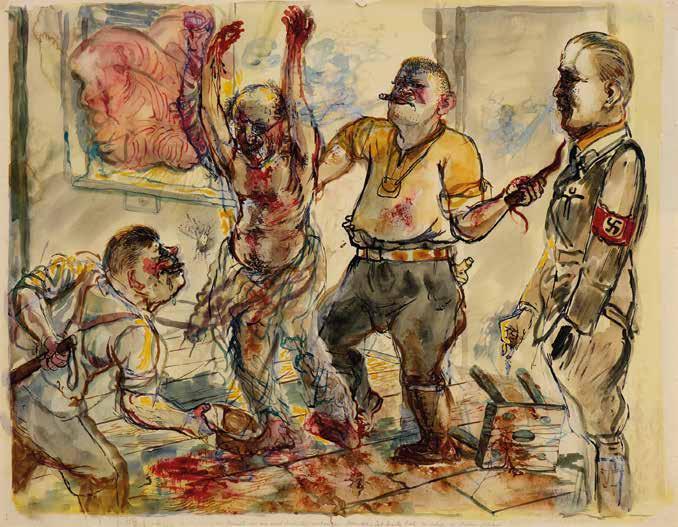 Interrogation, 1938m Watercolour and ink on paper Ben Uri Collection. Acquired in 2010 with the assistance of Art Fund, the MLA/ V&A Purchase Grant Fund, Sir Michael and Lady Heller, Judit and George Weisz, Agnes and Edward Lee, and The Montgomery Gallery, San Francisco Immigrated to USA 1933