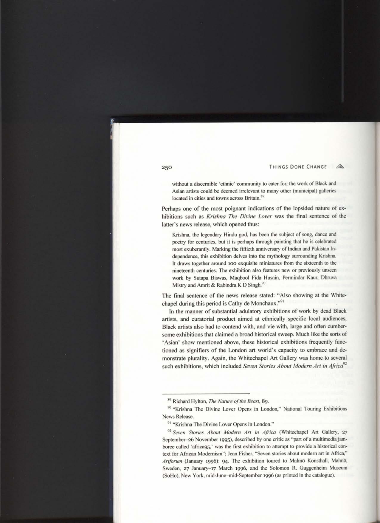 *" For anappraisal of this, sec Richard Hylton The Nature ofthe Beast, particularly "Municipal Galleries." in the chapter "Publicly funded galleries, "survey" exhibitions and Black artists during the 1980s."