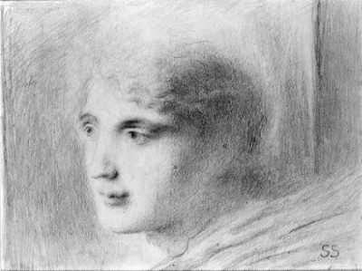 (Fig. 278) Simeon Solomon, Head of a Girl, Date Unknown, Private Collection, pencil, 355x265mm.