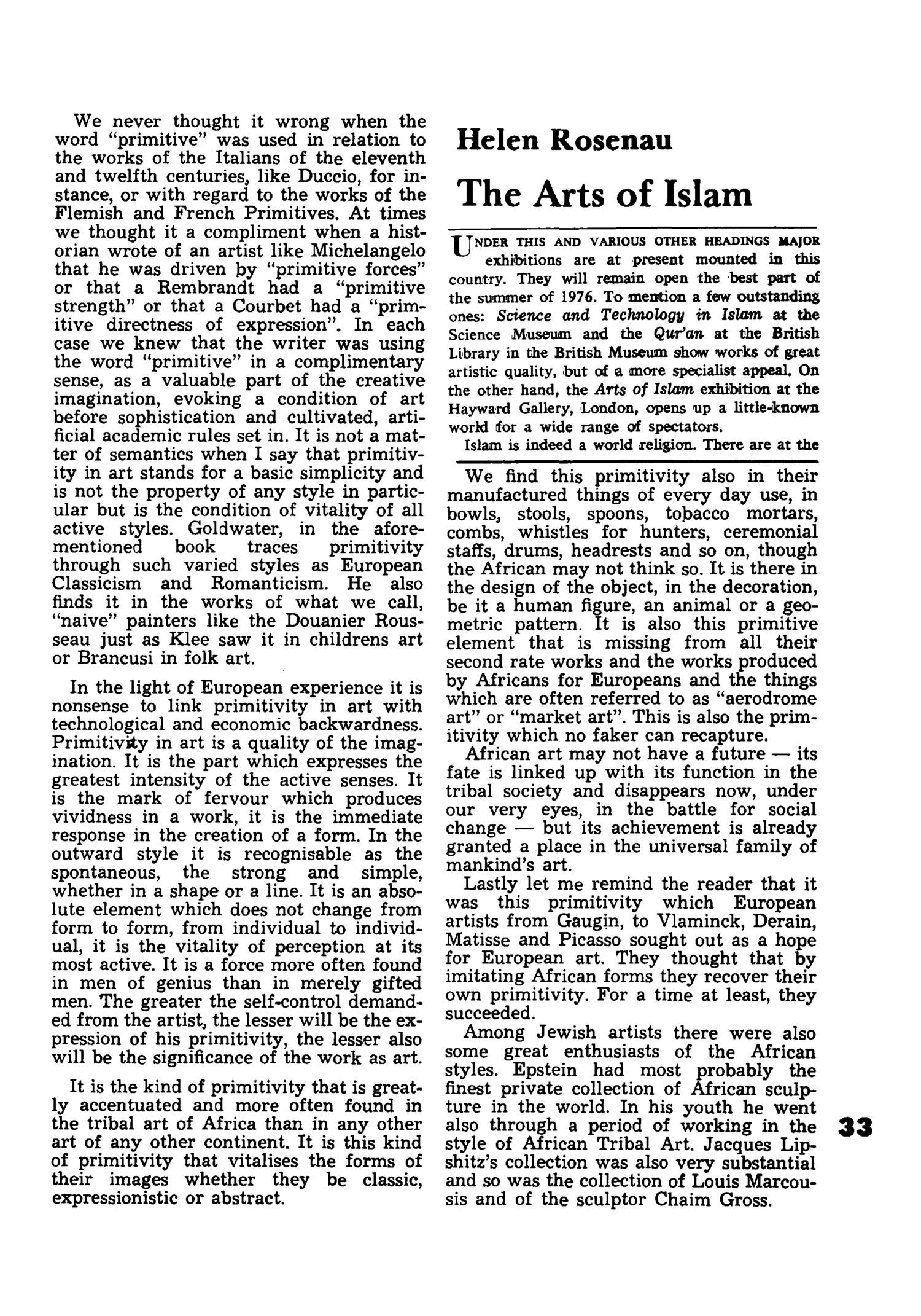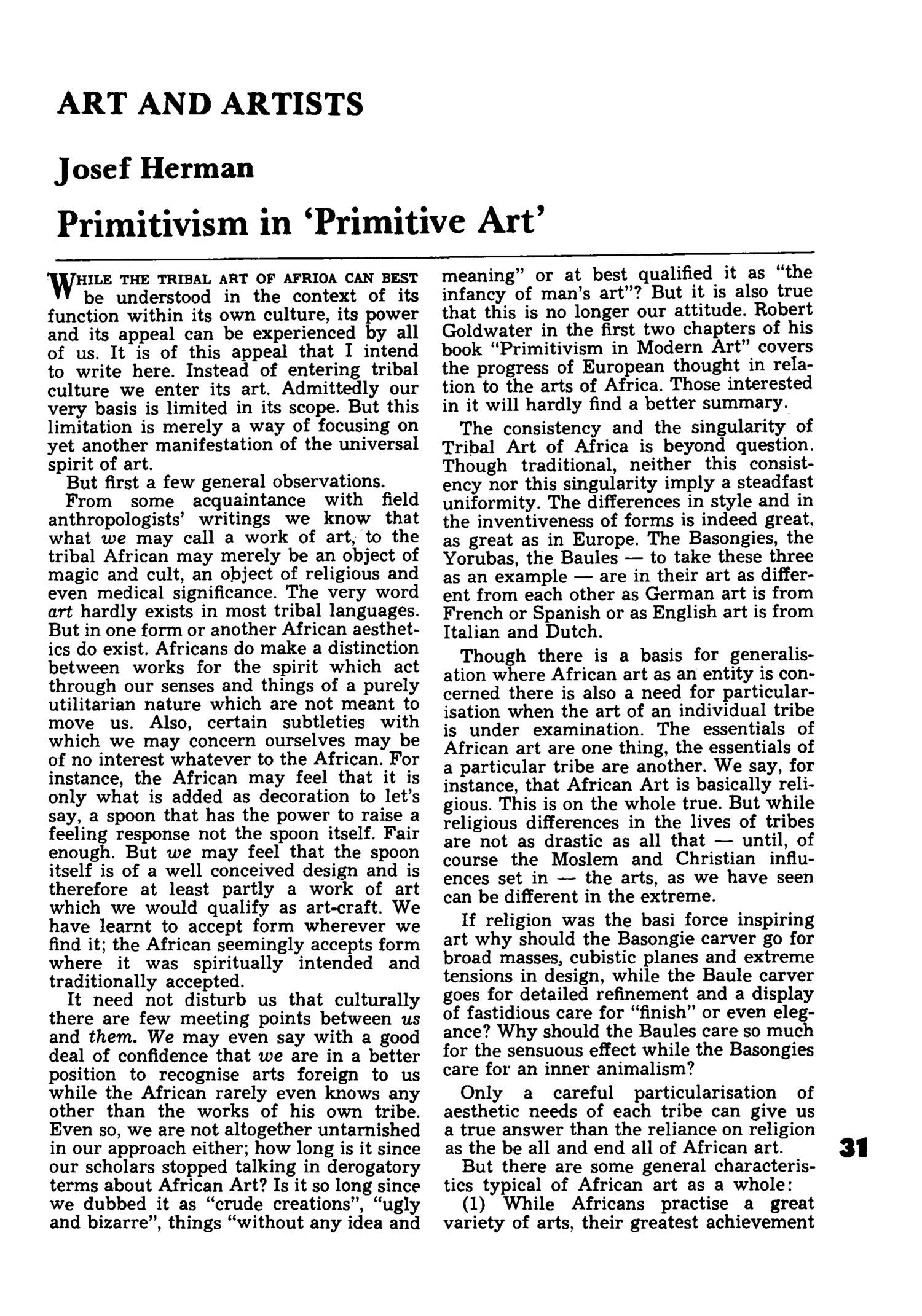 PRIMITIVISM IN PRIMITIVE ART