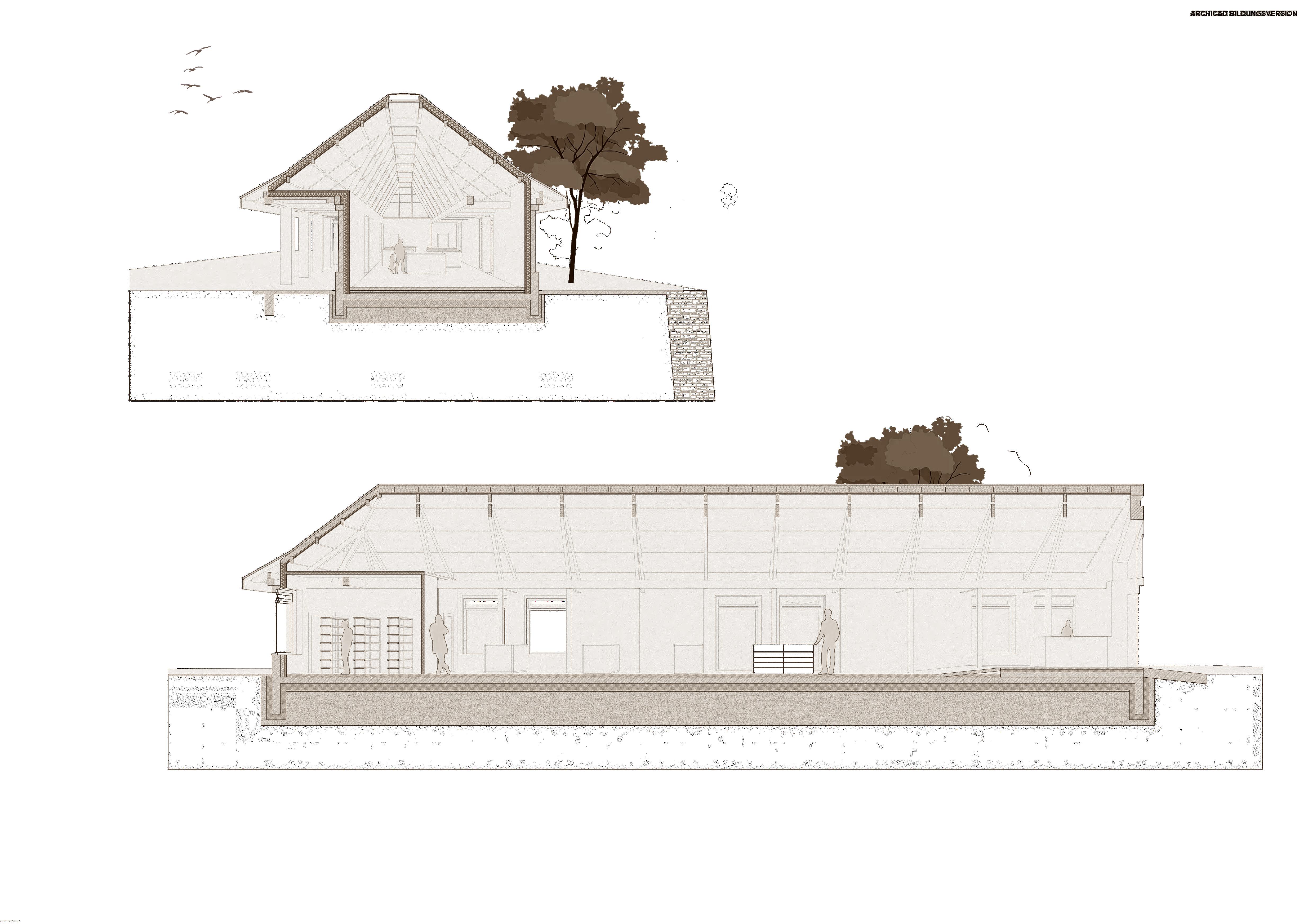 adaptation of the roof shape opening to the adjacent park area