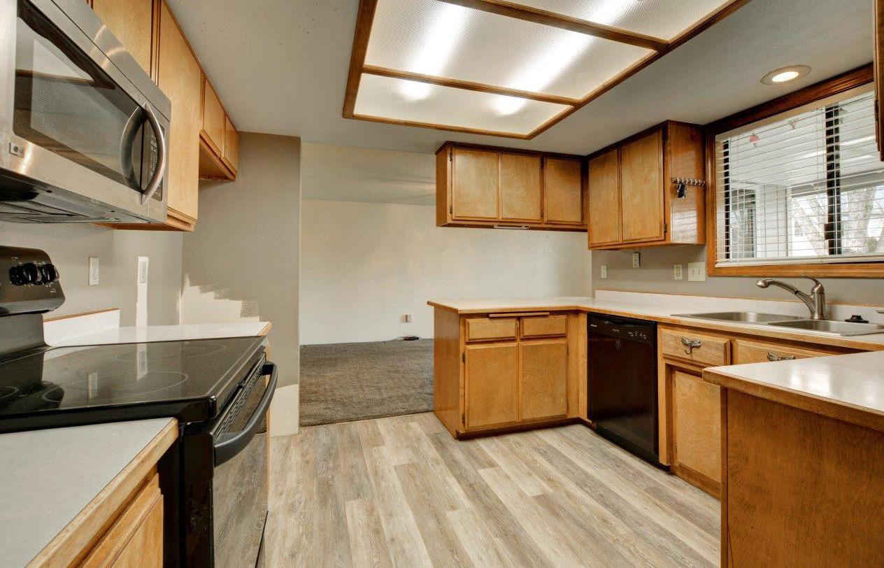 Step into the large kitchen, where you’ll find a glass top range oven, trash compactor, dishwasher, and excellent lighting. The kitchen is perfect for whipping up your favorite meals and entertaining guests. You’ll have everything you need right at your fingertips, from the ample storage space to the sleek appliances.