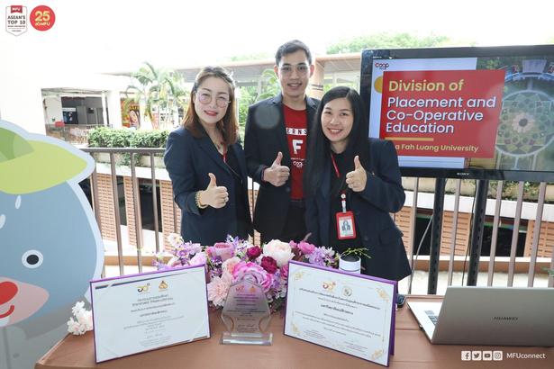 สวนจดหางานและฝกงานของนกศกษาเขารวมประกวดนวตกรรมเพอ เพมประสทธภาพการทํางาน ประจําป พ.ศ. 2565 โดยไดรบรางวลพรอมเกยรต บตรการประกวดนวตกรรมเพอเพมประสทธภาพการทํางาน ประจําป พ.ศ. 2565 ในประเภทรางวล Popular Vote ชอผลงาน "ระบบฝกปฏบตงานมหาวทยาลย แมฟาหลวง (MFU Internship System)" โดยไดรบเกยรตจาก รศ. ดร.ชยา พร วฒนศร อธการบดมหาวทยาลยแมฟาหลวง ในการมอบรางวลเกยรตบตร และ ไดรบเกยรตจาก รศ. ดร.นนทนา คชเสน รองอธการบดฯ ในการมอบชอดอกไมและ เงนรางวล ณ หองดอยตง อาคารวนชย ศรชนะ (AD1) มหาวทยาลยแมฟาหลวง เมอวนท 9 มนาคม 2566 สแกน QR Code รบชมผลงาน 1