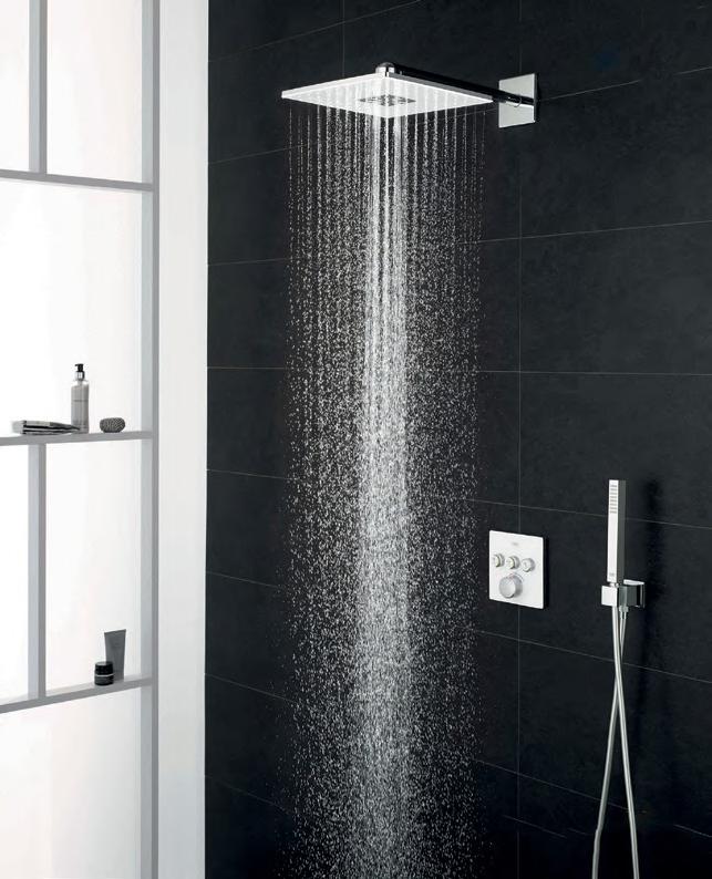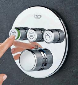 GROHE wall. It includes an integrated sealing system, ensuring that no water penetrates the wall. One can regulate up to three showers with just one trim. Up to three SmartControl valves, plus a thermostat or mixer, can be put in one trim with a GROHE Rapido SmartBox, allowing to control two head shower sprays and a hand shower all in one place.