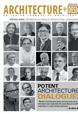 June 2020 ARCHITECTURE+ DESIGN6 Entire contents Copyright © 2018 Burda Media India Private Limited, Ambience Mall, 7th Floor, Gate No. 4, Ambience Island, NH-8, Gurugram - 122002, Haryana, India. All rights reserved throughout the world. Reproduction or translation in any language in whole or in part without the consent of Burda Media India Private Limited is prohibited. Requests for permission should be directed to Burda Media India Private Limited Published by Puneet Nanda from Burda Media India Private Limited Ambience Mall, 7th Floor, Gate No. 4, Ambience Island, NH-8, Gurugram - 122002, Haryana, India. Printed at Galaxy O set India Pvt. Ltd. Plot No 184-185, Sector-8, IMT Manesar, Gurugram, Haryana-122050 Editor: Seema Sreedharan, Architecture+Design does not take responsibility for returning unsolicited publication material. All disputes are subject to the exclusive jurisdiction of competent courts and forums in Delhi/New Delhi only. Opinions expressed in the articles are of the authors and do not necessarily reflect those of the editors or publishers. While the editors do their utmost to verify information published they do not accept responsibility for its absolute accuracy. Unsolicited material is sent at the owner’s risk and the publisher accepts no liability for loss or damage. All correspondence regarding advertising or editorial should be addressed to Burda Media India Private Limited, Ambience Mall, 7th Floor, Gate No. 4, Ambience Island, NH-8, Gurugram - 122002, Haryana, India INDIA’S MOST ARCHITECTURALAUTHENTICMAGAZINE. Over 38 Years of Invigorating Architectural Journalism It portrays modern trends in design planning, building technology, research and development and such other segments Significant features: Project profiles, conservation and environmental issues, product information and much more... BURDA MEDIA INDIA PRIVATE LIMITED TO SUBSCRIBE, CALL: +91 9868413813 E-Mail:E-Mail:subscribe@burdaluxury.comToADVERTISE,sales@burdaluxury.com AN INDIAN JOURNAL OF ARCHITECTURE “There are 360 degrees, so why stick to—ZAHAone?”HADID A DIGITAL VERSION OF ARCHITECTURE+DESIGN IS AVAILABLE ON www.architectureplusdesign.in Head of Content and Brand Solutions SONAL DAS Editor SEEMA SREEDHARAN Architectural Assistant NISHA KAPIL Consultant – Editing NIJITA NANDAN KADAM and SATARUPA PAUL Editorial Co-ordinator KANCHAN RANA Assistant Art Director SACHIN JAIN PRODUCTION Production Director RITESH ROY Manager MANOJ CHAWLA SALES Director – Global Advertising Partnerships SANJIV BISARIA, Mobile: +91 9811562019 Manager – Sales & Brand Solutions TANVEER SHAH, Mobile: +91 9967695937 CHIEF FINANCIAL OFFICER PUNEET NANDA REGIONAL MANAGER, HR & COMPLIANCE, ASIA SONYA CAROLINE SHAH SENIOR MANAGER – ADMIN SUSHILA CHOUDHARY EDITORIAL AND ADVERTISING OFFICE Burda Media India Private Limited Ambience Mall, 7th Floor, Gate No. 4, Ambience Island, NH-8, Gurugram - 122002, Haryana, India Editorial email: aplusd@burdaluxury.com; seema.sreedharan@burdaluxury.com CIRCULATION AND VISIBILITY Senior Manager BIJAY KUMAR KAR (bijay.kar@burdaluxury.com) IT DEPARTMENT Manager IT ARUN SALHOTRA (arun.salhotra@burdaluxury.com) FOR SUBSCRIPTION Call: Gurugram: +91 9868413813 Email: subscribe@burdaluxury.com FRANCE/LUXEMBOURG MARION BADOLLE-FEICK Tel: +33 1 72 71 25 marion.badolle-feick@burda.com24AUSTRIA CHRISTINA BRESLER Tel: +43 1230 60 30 christina.bresler@burda.com50SWITZERLAND GORAN VUKOTA Tel: +41 44 81 02 goran.vukota@burda.com146ITALY MARIOLINA SICLARI Tel: +39 02 91 32 34 mariolina.siclari@burda-vsg.it66 UK/IRELAND JEANNINE SOELDNER Tel: +44 20 3440 jeannine.soeldner@burda.com5832GERMANY JULIA MUND Tel: +49 89 92 50 31 julia.mund@burda.com97 MICHAEL NEUWIRTH Tel: +49 89 9250 michael.neuwirth@burda.com3629USA/CANADA/MEXICO SALVATORE ZAMMUTO Tel: +1 212 884 48 salvatore.zammuto@burda.com24 BURDA MEDIA INDIA PRIVATE LIMITED IS A COMPANY OF THE HUBERT BURDA MEDIA GROUP Hubert Burda Media India CEO BJÖRN RETTIG BURDALUXURY CEO BJÖRN RETTIG Director-Print Operations And Strategy SIMON CLAYS Hubert Burda Media Board Member International MARTIN WEISS DISTRIBUTED BY LIVING MEDIA INDIA LIMITED BURDA INTERNATIONAL HOLDING GMBH Legal Address: Hubert Burda Platz 1, 77652 O enburg, Germany Postage address: Arabellastrasse 23, D-81925 Munich, Germany INTERNATIONAL SALES & ADVERTISING JioMag
