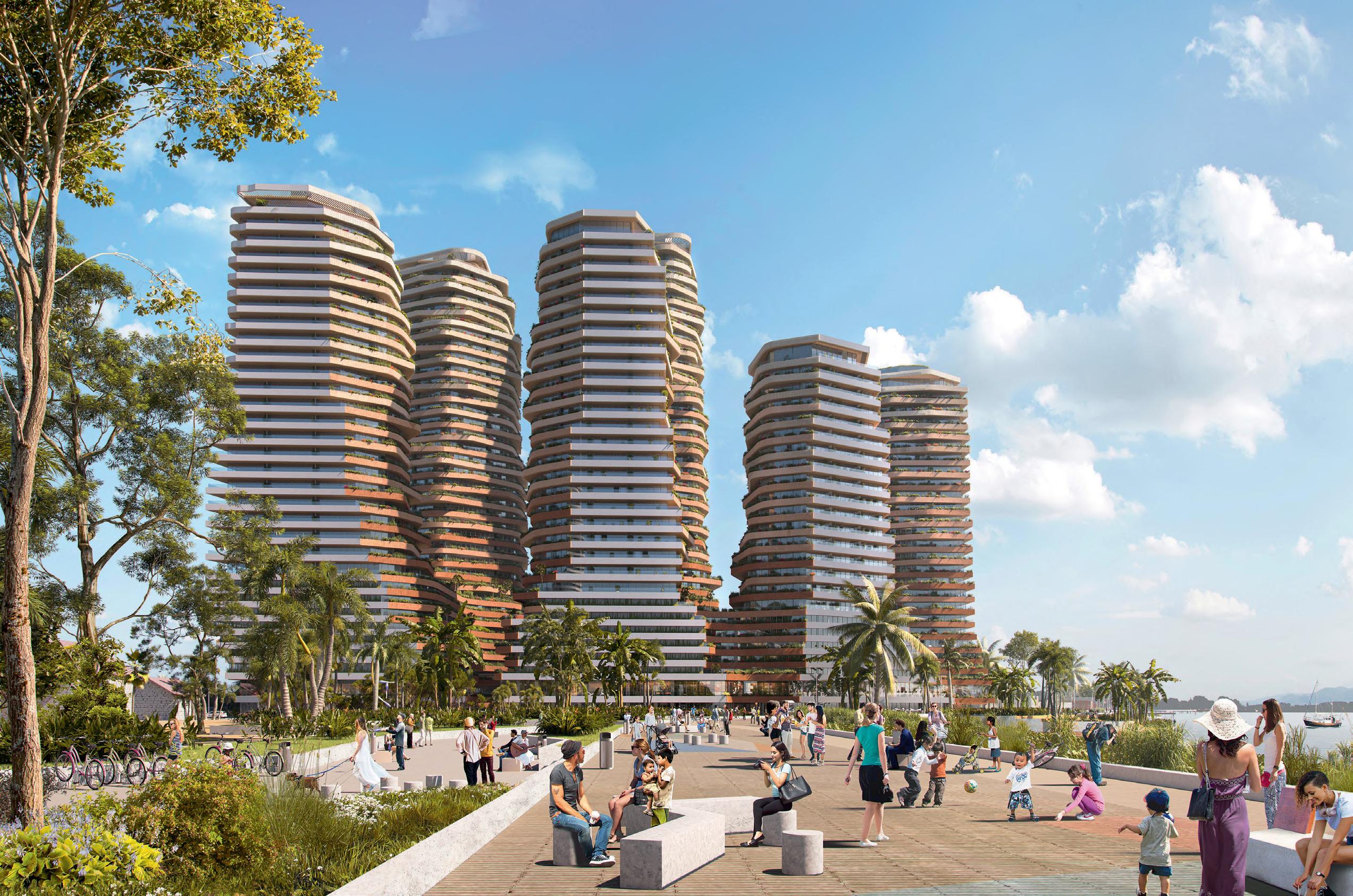 “The complex is almost a city in itself, with towers of different heights, so it’s a mini skyline. But it’s also part of a larger skyline along the promenade,” says MVRDV founding partner Jacob van Rijs. “It was important for us that the project was not just an island in the city, but that it offered access to others as well, that it would give something back in the form of a public plinth. So it’s a very exciting space for people to go to, somewhere that we hope people can meet with friends. At the same time, the balconies that characterise the towers offer space for greenery as well as protection from the sun and rain.”