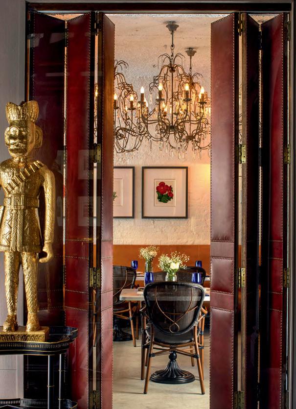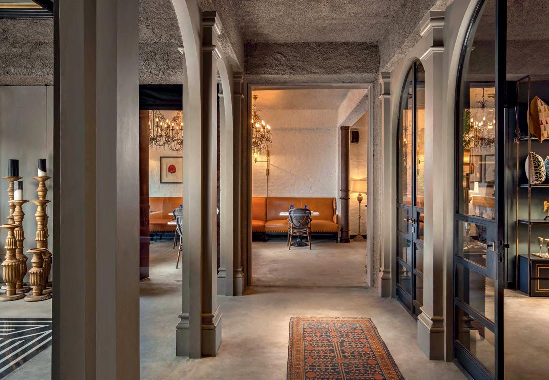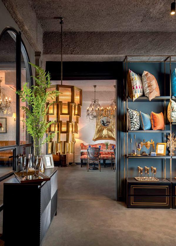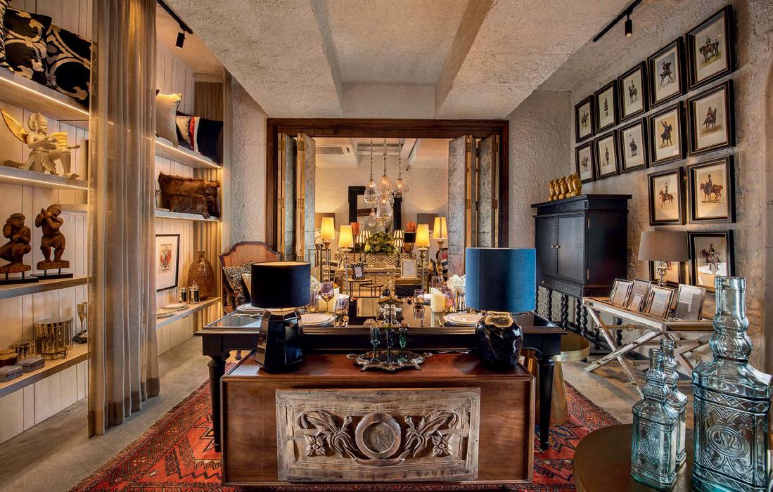 seating of white marble top tables, chic cane chairs, classic upholstered sofas in exotic prints; and eye-catchingly displayed exquisite home accessories, some created in-house, others sourced from across the globe; and grand vintage-inspired chandeliers—create captivating space for memorable moments.
