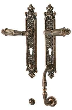 Door handles on plate and on roses, door pull handles and entrance door sets