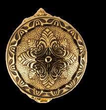 Each unique masterpiece is handcrafted with brass. The articles shown in the catalogue can be produced with different finishes and with different stones.