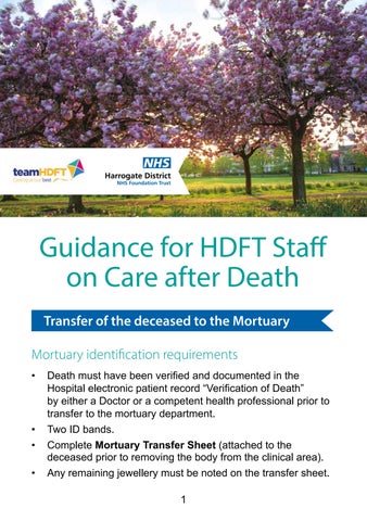 • Complete Mortuary Transfer Sheet (attached to the deceased prior to removing the body from the clinical area).
