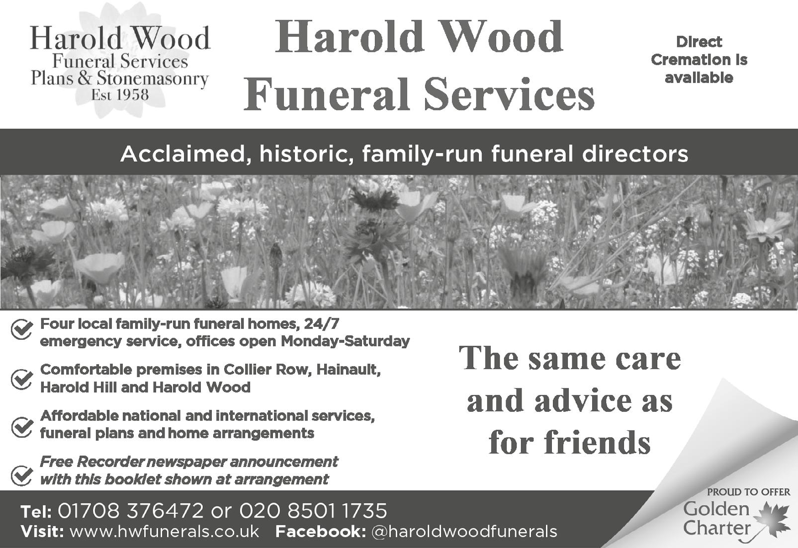 Details of local funeral directors can be found online, and all are independent of the trust. We cannot recommend a funeral director.