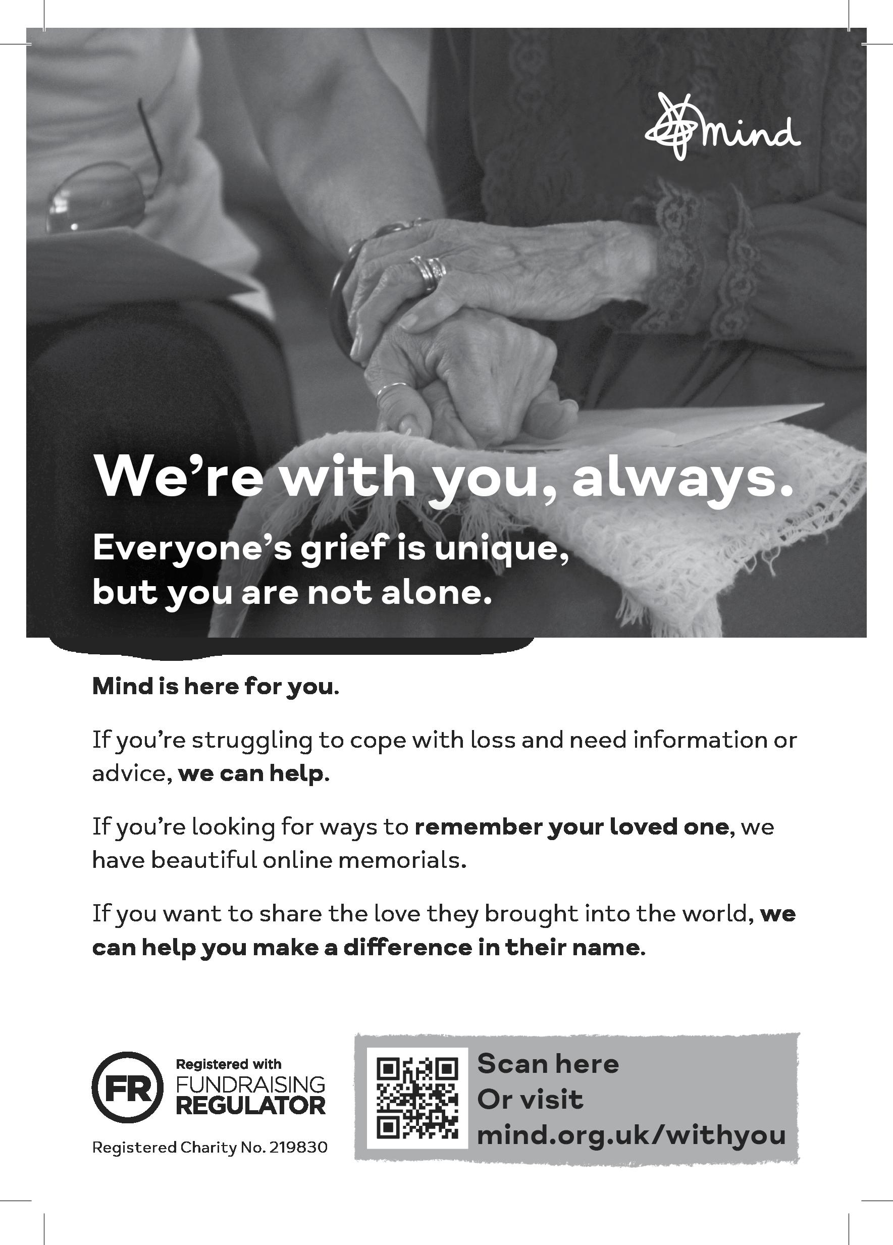 Please do not hesitate to ask questions or raise any concerns. Our bereavement team will always be happy to help you and can be contacted on 01689 863584 / 863585 / 863188.