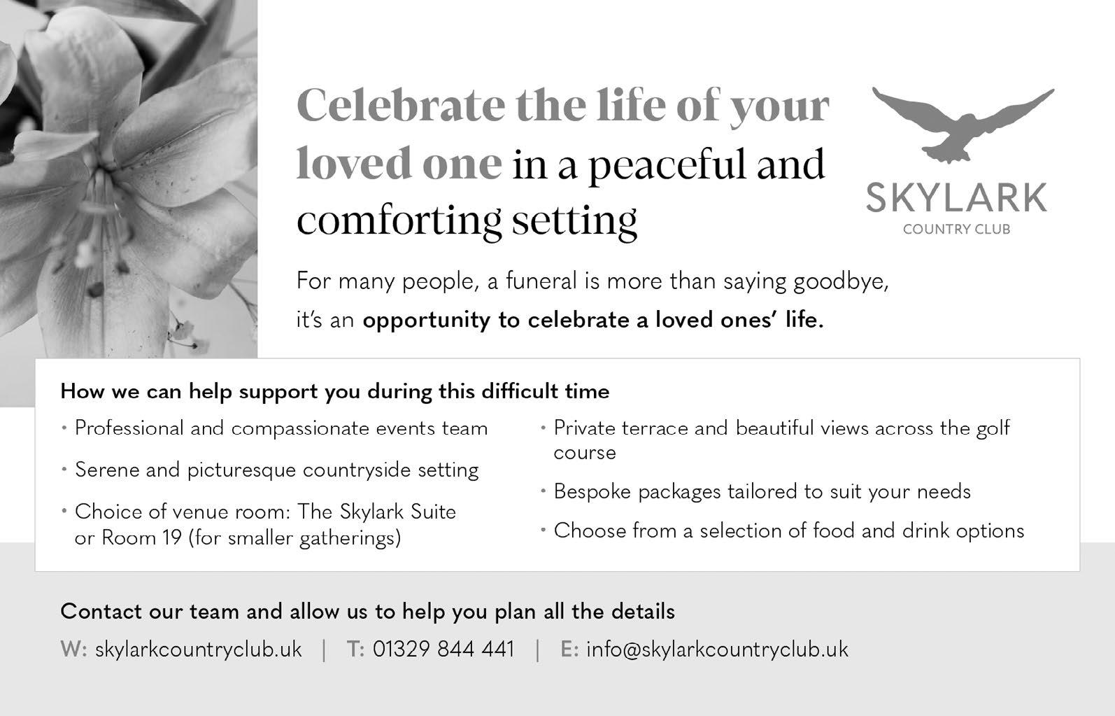 Hampshire Registry Office can be contacted on 0300 555 1392, or please see www.hants.gov.uk/birthsdeathsandceremonies/registrationservices/ deaths