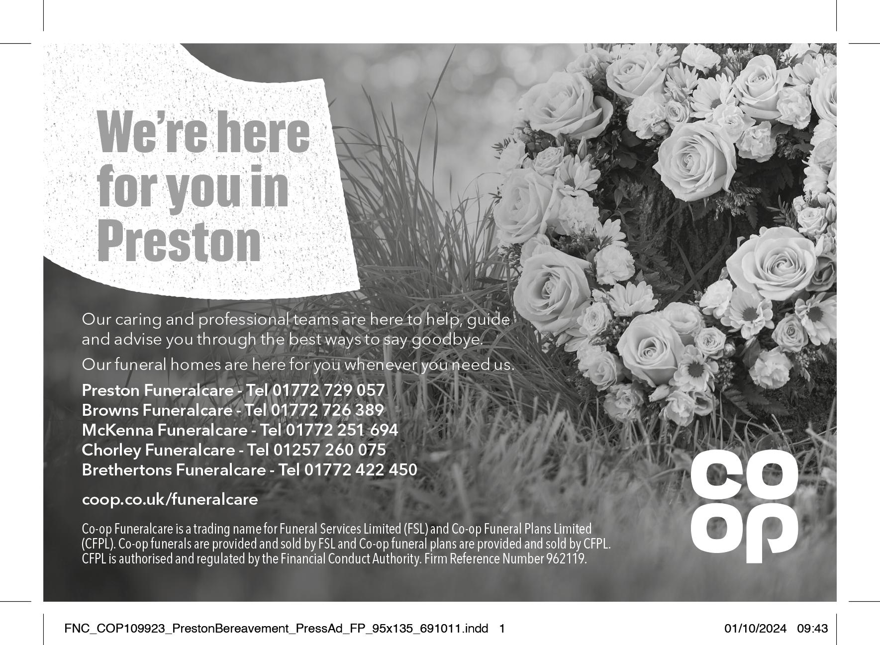 Contact the Bereavement Centre the next working day before 12pm on 01772 522258