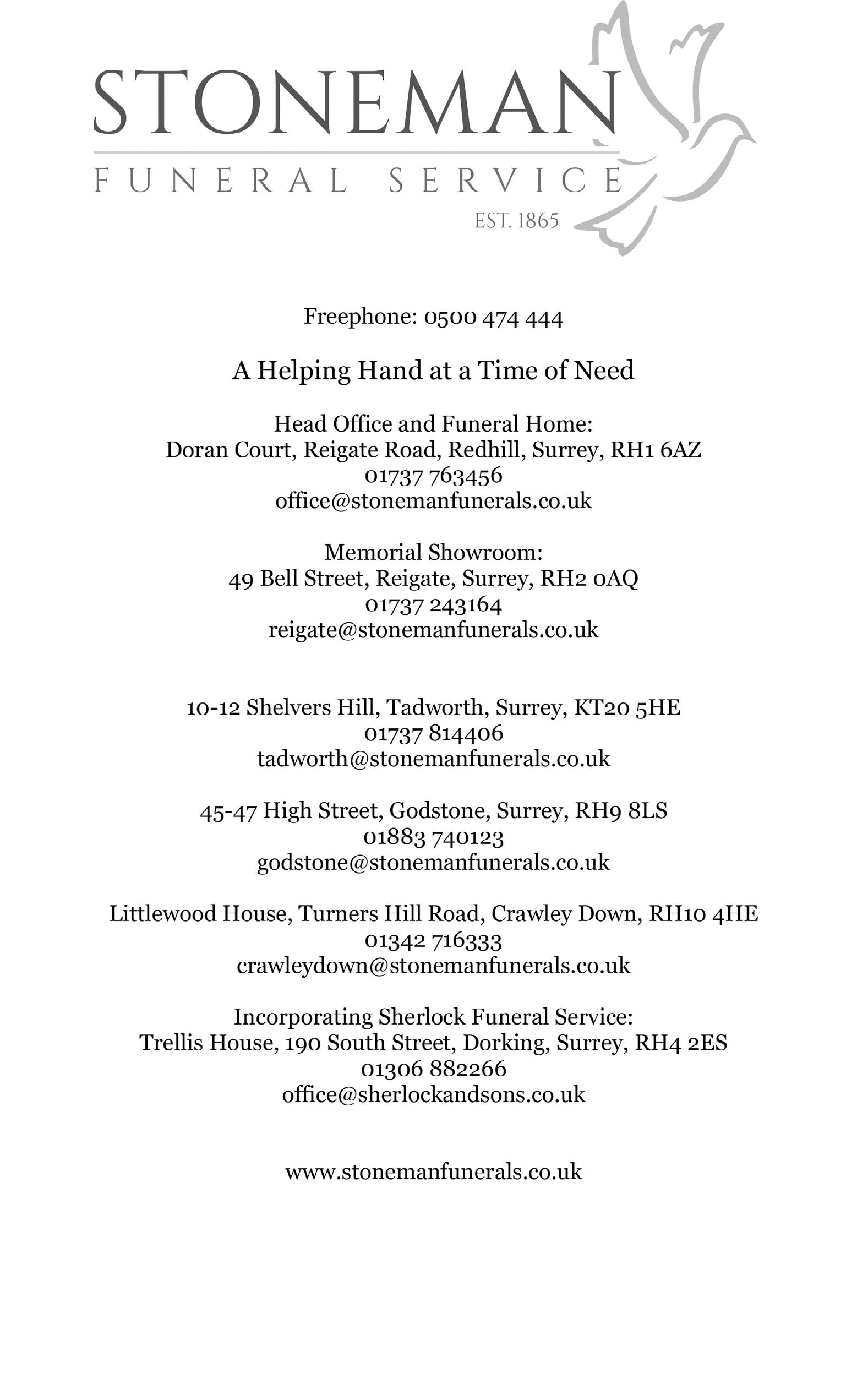 If at a future date you wish to have your loved one’s name entered in The Book of Remembrance at St Helier Hospital, please contact The League of Friends Tel: 020 8296 2462 between 9am and 1pm or email: theleagueoffriends@hotmail.com