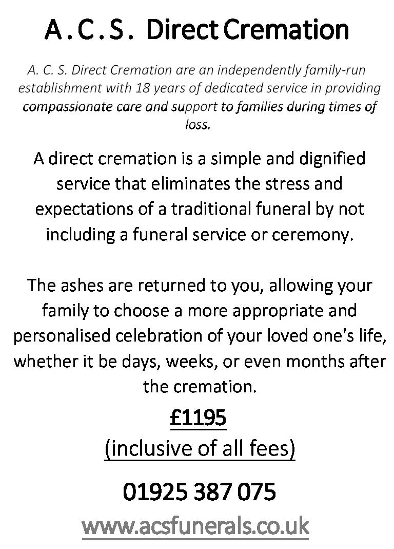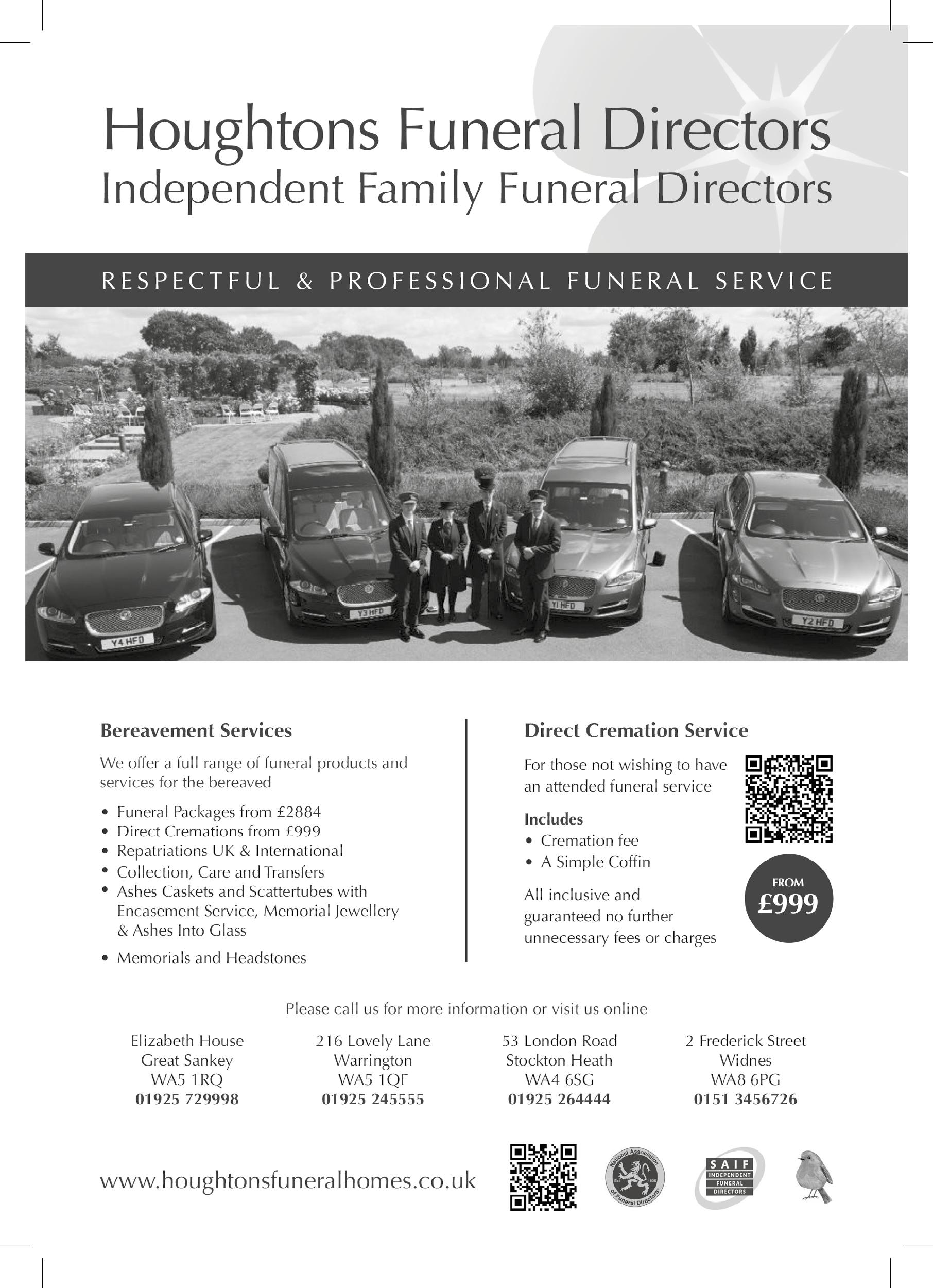 Please call the Bereavement Office on 01925 662294 the following day after 11am (Monday – Friday) to give contact details
