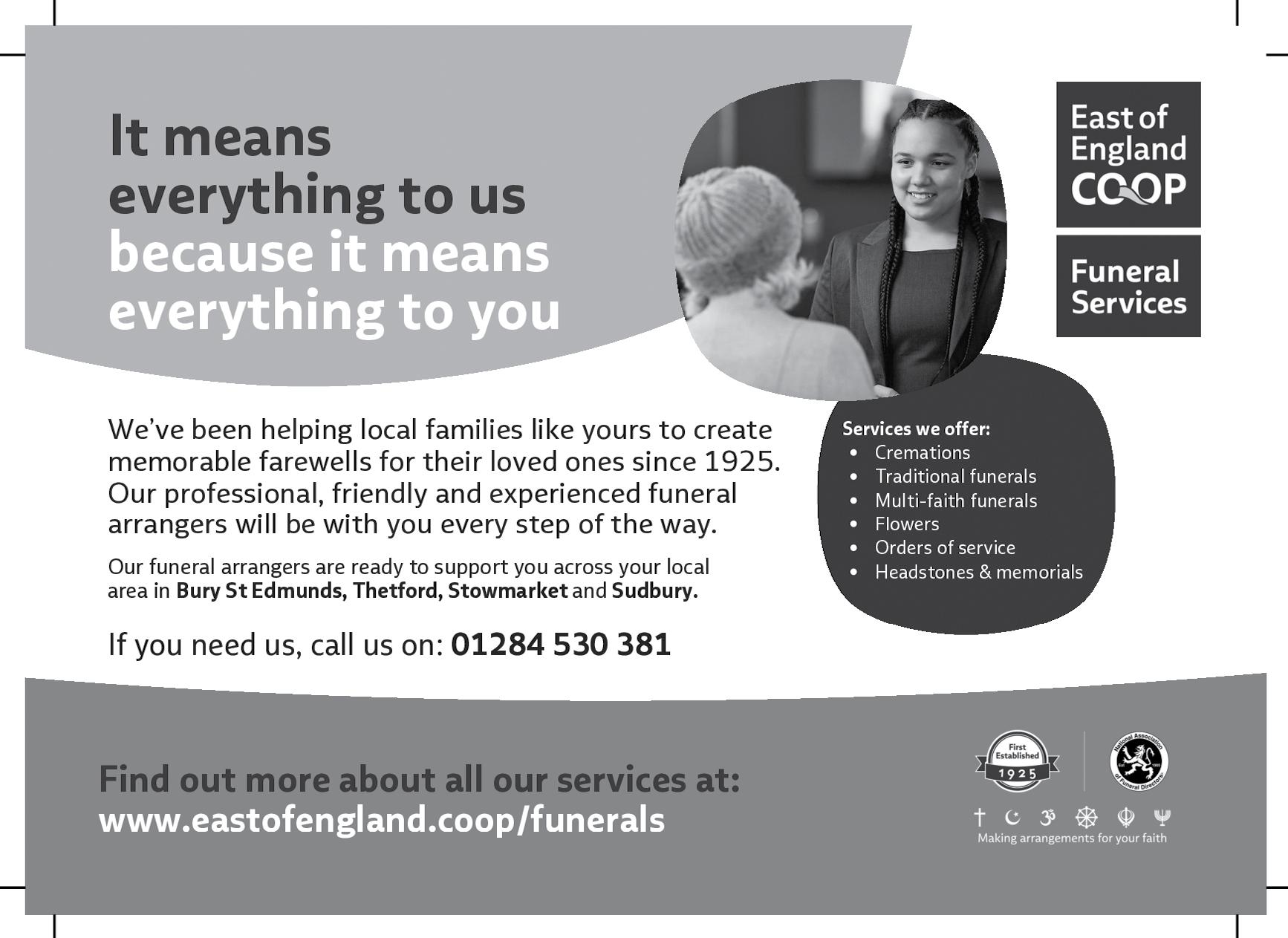 Please call the bereavement office on 01284 713410 between 9.30am to 3.30pm Monday to Friday, to arrange a mutually convenient date and time.