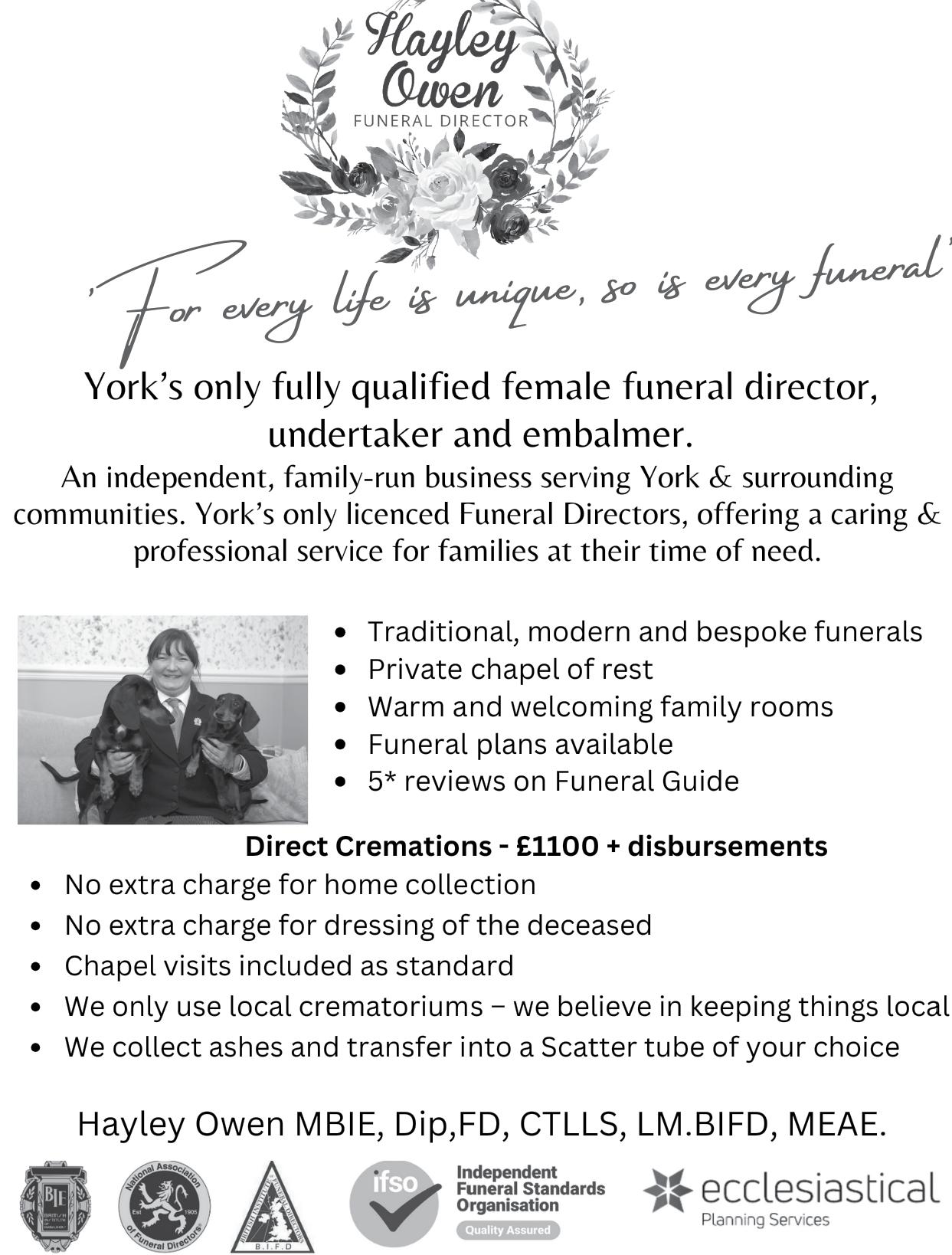 If the person who has died has no next of kin or there are concerns regarding finances or funeral arrangements, please contact our Bereavement Services Office on 01904 725445 before you make any arrangements and we may be able to offer further advice.