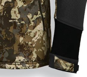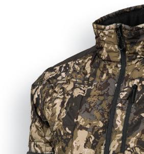 Water-repellent and 100% windproof jacket thanks to the use of Gore-Tex Infinium™ Wind Stopper ® fabric. In addition, the jacket is extremely breathable allowing water to evaporate. To make this jacket even more comfortable, Gore-Tex ® Stretch inserts under the arms provide greater mobility. The jacket is reinforced in the arms and shoulders with an elastic abrasionresistant insert to improve the ruggedness and durability of the jacket. To ensure warmth, the jacket is insulated with Prima-Loft ® Silver. The jacket is available in Veil Avayde and Reaper Timber, advanced waterfowl concealment camos.