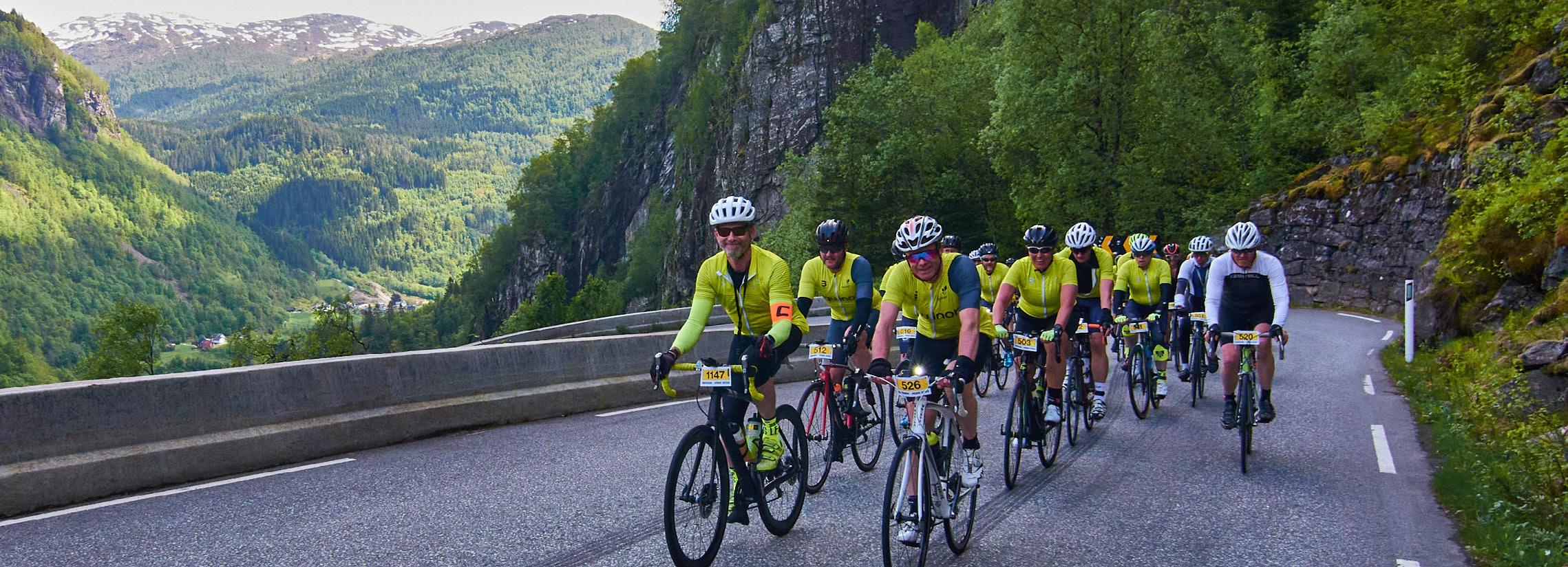 til bedriftslag og andre grupper med sammensatt nivå. Rittet er også perfekt for aktive mennesker i Hardangerregionen, og mulig for alle da Tide Reiser transporterer deltagere fra Bergen og Voss til Norheimsund før start.