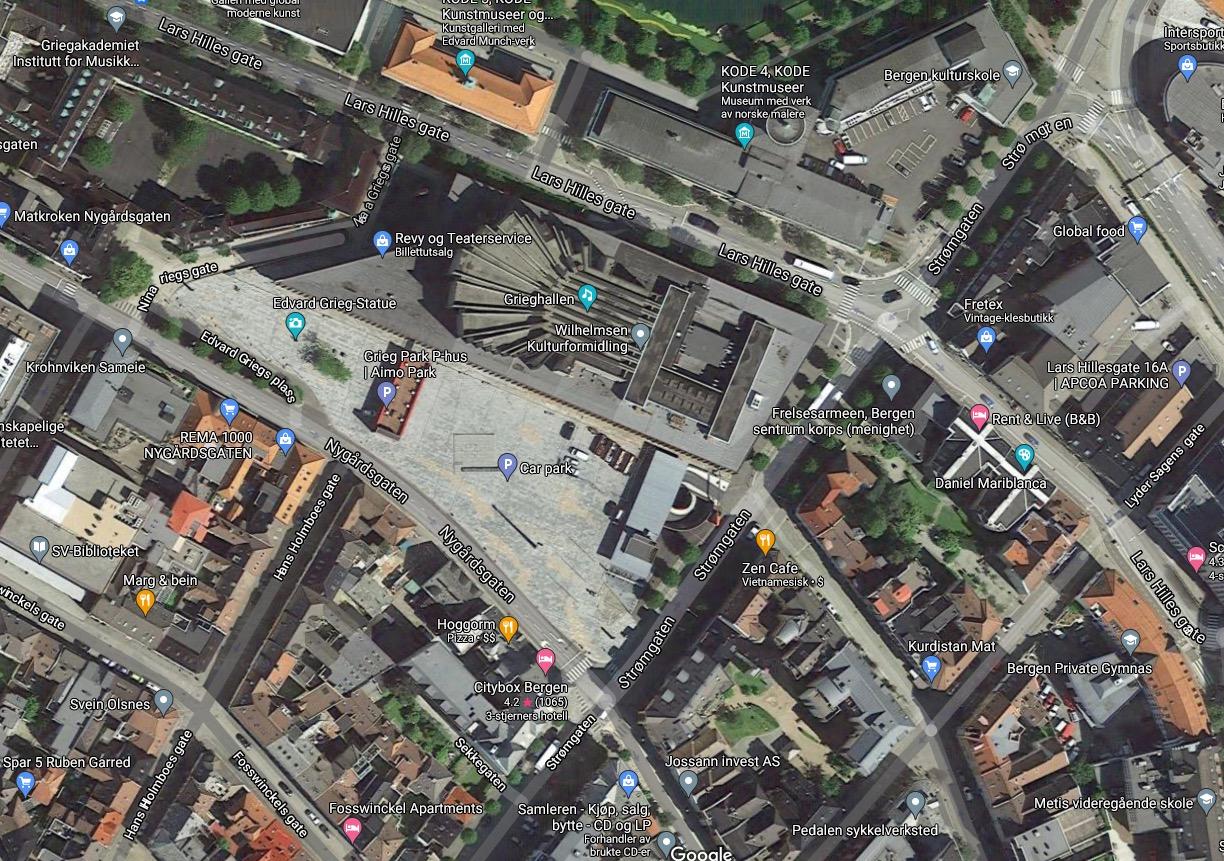 Trenger du parkering, anbefaler vi Bygarasjen eller Bergen Griegpark