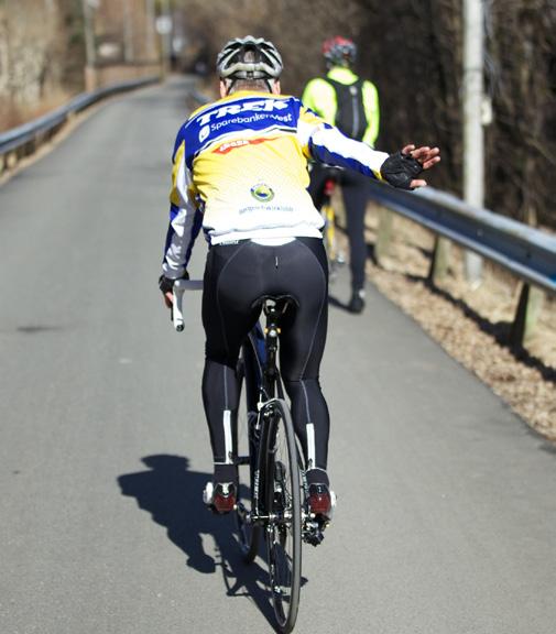 Møter du en hindring ved veikanten er det viktig å melde dette bakover i gruppen. Hindringen kan for eks. være en bil, en fotgjenger eller en syklist dere kjører forbi.