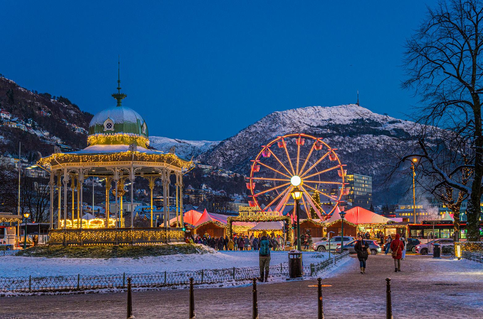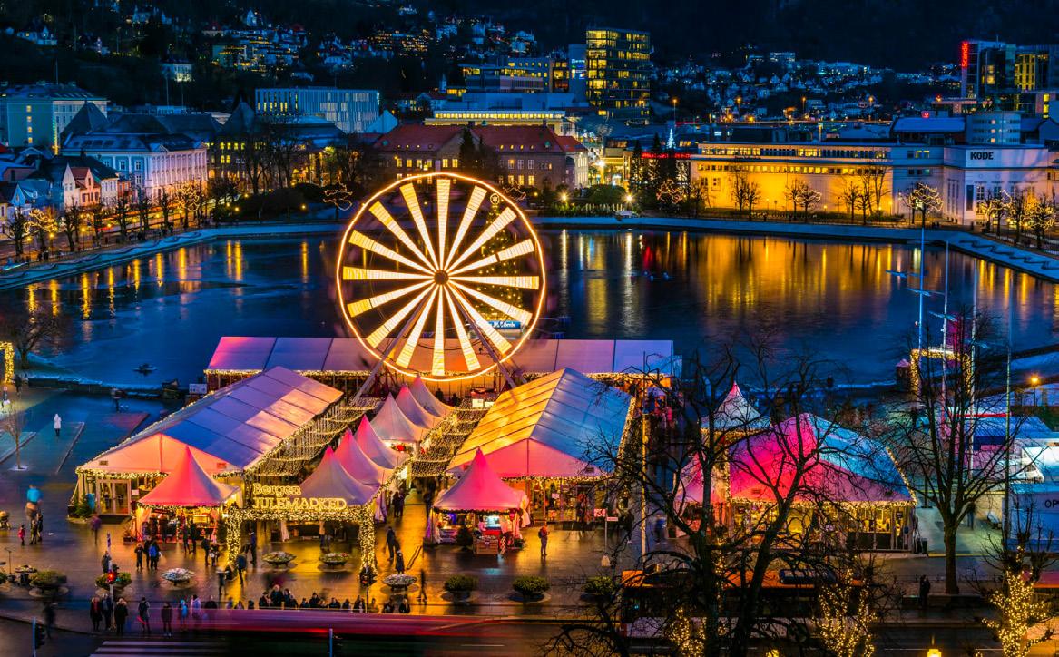 Fra 21. november til 22. desember fylles Festplassen i Bergen med julelys, boder og aktivitet når Bergen Julemarked åpner for sesongen. Her finner du mer enn 90 attraksjoner, barer og salgsboder med alt fra håndverk og lokalprodusert mat til julepynt, klær og gaver.