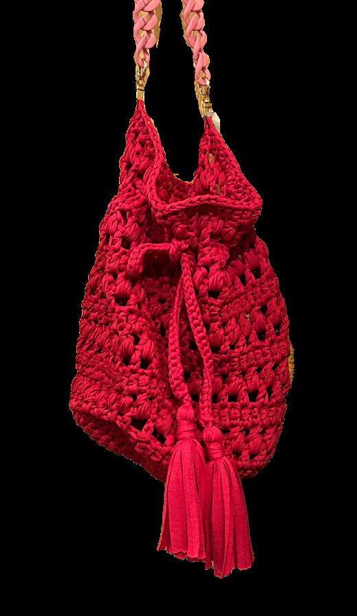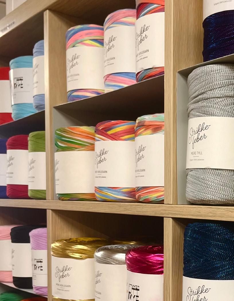 Vårt utvalg av garn, fra basic til full glam, lar deg skape akkurat det uttrykket du ønsker deg. Bruk tykt lisse- eller “T-skjorte”-garn, for et enkelt preg, eller spice det opp med glitrende tyll og paljetter. Enten du går for boho-inspirert strandveske i naturfarger, eller full glitter og glam for et statement piece som virkelig skiller seg ut, har vi materialene og oppskriftene for deg!