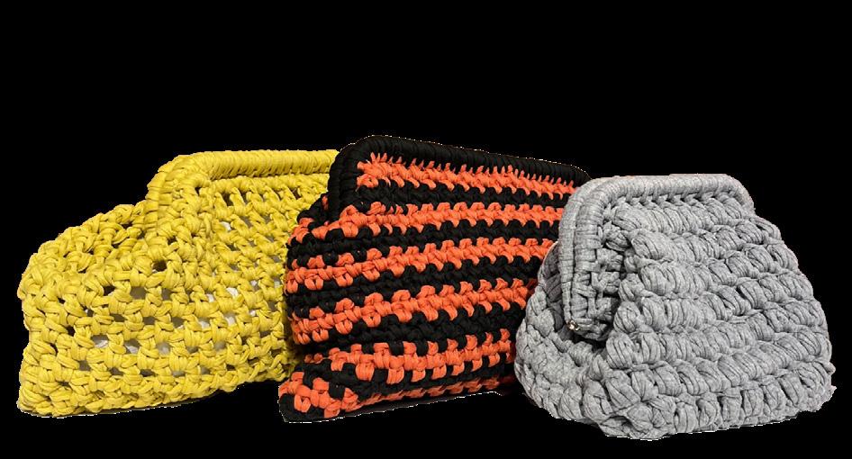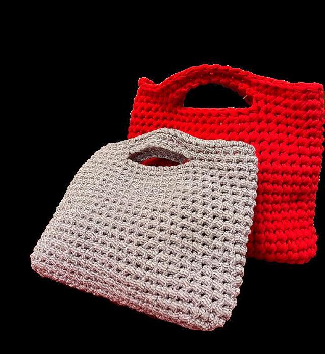 Ett nøste heklegarn fra Strikkefeber koster 249,- og har nok meter til å lage små vesker som disse!