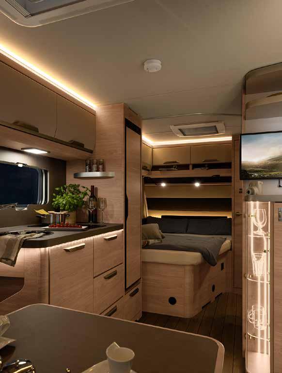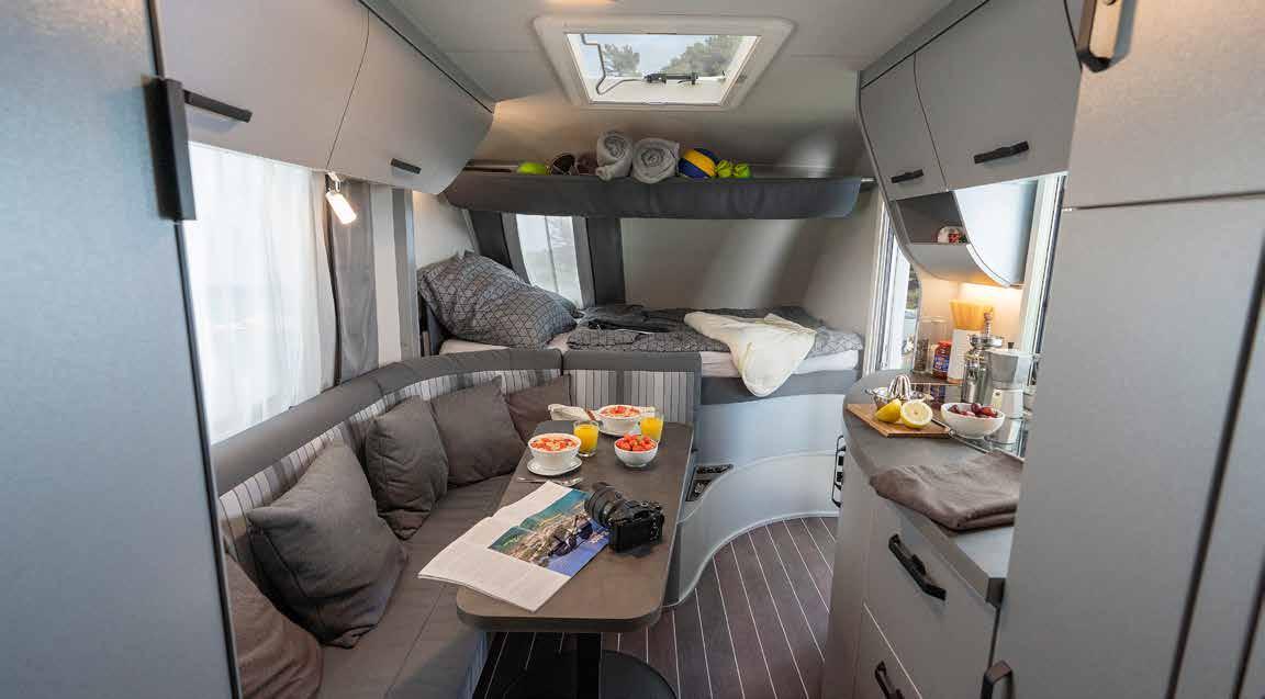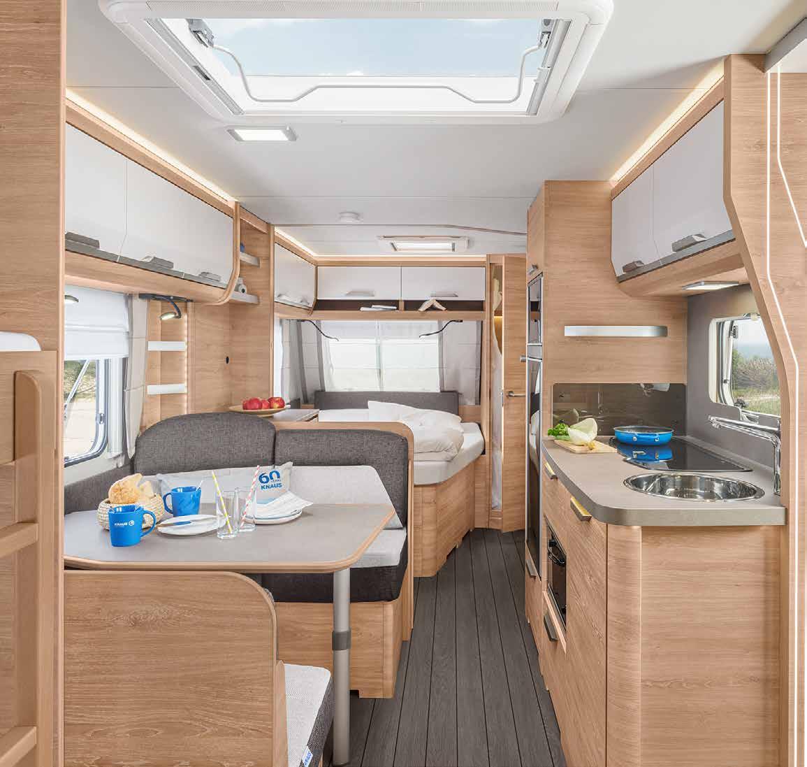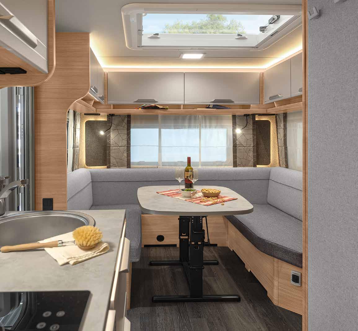 För campingnykomlingar och säsongssemesterfirare är de gasolfria E.POWER SELECTIONplanlösningarna ett attraktivt alternativ. Förutom enklare hantering och ökad säkerhet har den här specialmodellen många kännetecken av högsta klass.